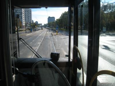 ヴロツワフの市バス内から撮った写真です。市バスですが、バス乗場に乗車券販売機があって、現金でもカードでも買うことが出来ました。私は、現金を使いました。