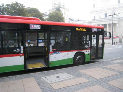 ルブリン駅と旧市街の間は、結構離れいて、徒歩で行くのは厳しいです。アクセスは、1番の市バスが便利です。写真は、市バスです。