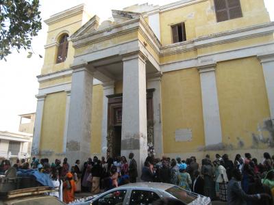 数日間で駆け足でセネガルとガンビアを巡るので、時間節約のため、現地ガイドと専用車を現地旅行社に手配致しました。おかげで、無駄のない旅行が出来ました。写真は、1日目に訪れた世界遺産のサン=ルイの中の古い教会です。ちょうど結婚式をやっていました。