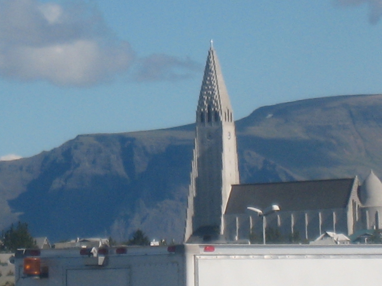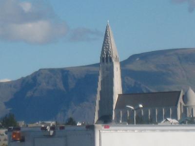 私のグリーンランド行きの飛行機がKEF空港ではなくREK空港だったおかげで、機内からレイキャビックのランドマークであるハットルグリムス教会の写真を撮ることが出来ました。結構遠かったのですが、目立っていましたから、大きな教会だと思います。