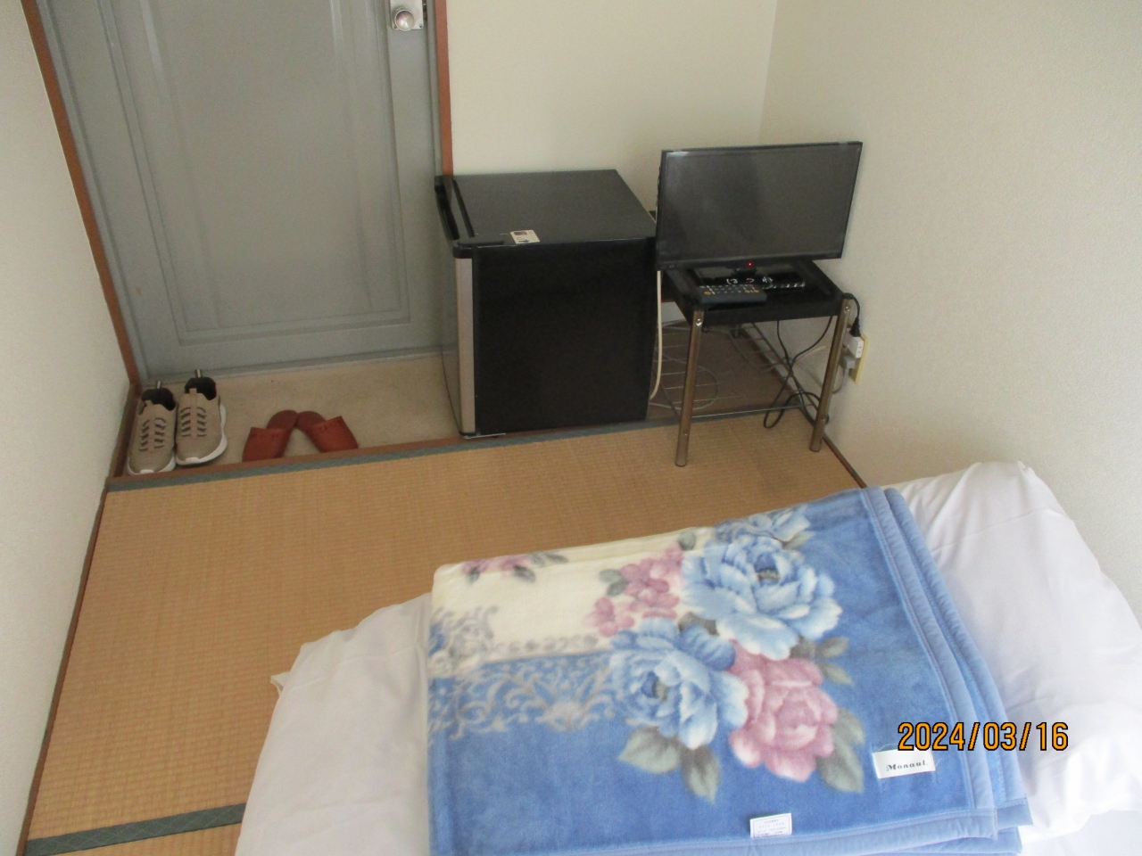 この宿は、シャワー・トイレ共同ですがTV・エアコン付き個室で\1600でした。但し、現金しか支払えませんでした。宿は、JR新今宮駅、大阪メトロ動物園前駅から至近です。宿の付近にはコンビニも多く便利でした。