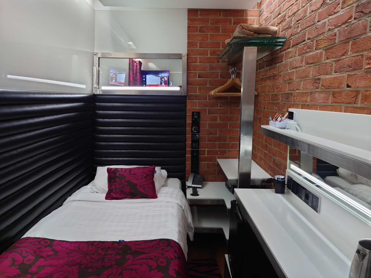 部屋はスタイリッシュなデザインで、コンパクトながら快適です。