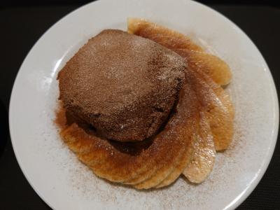 デザート・クレープは、中にアイスクリームとフランベしたラム酒が入っています。