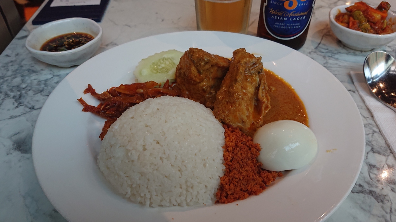 お目当てはナシ・ルマ。ココナッツミルクで炊き込んだライスがとても美味しく、カレーソースで煮込んだチキンと良く合います。