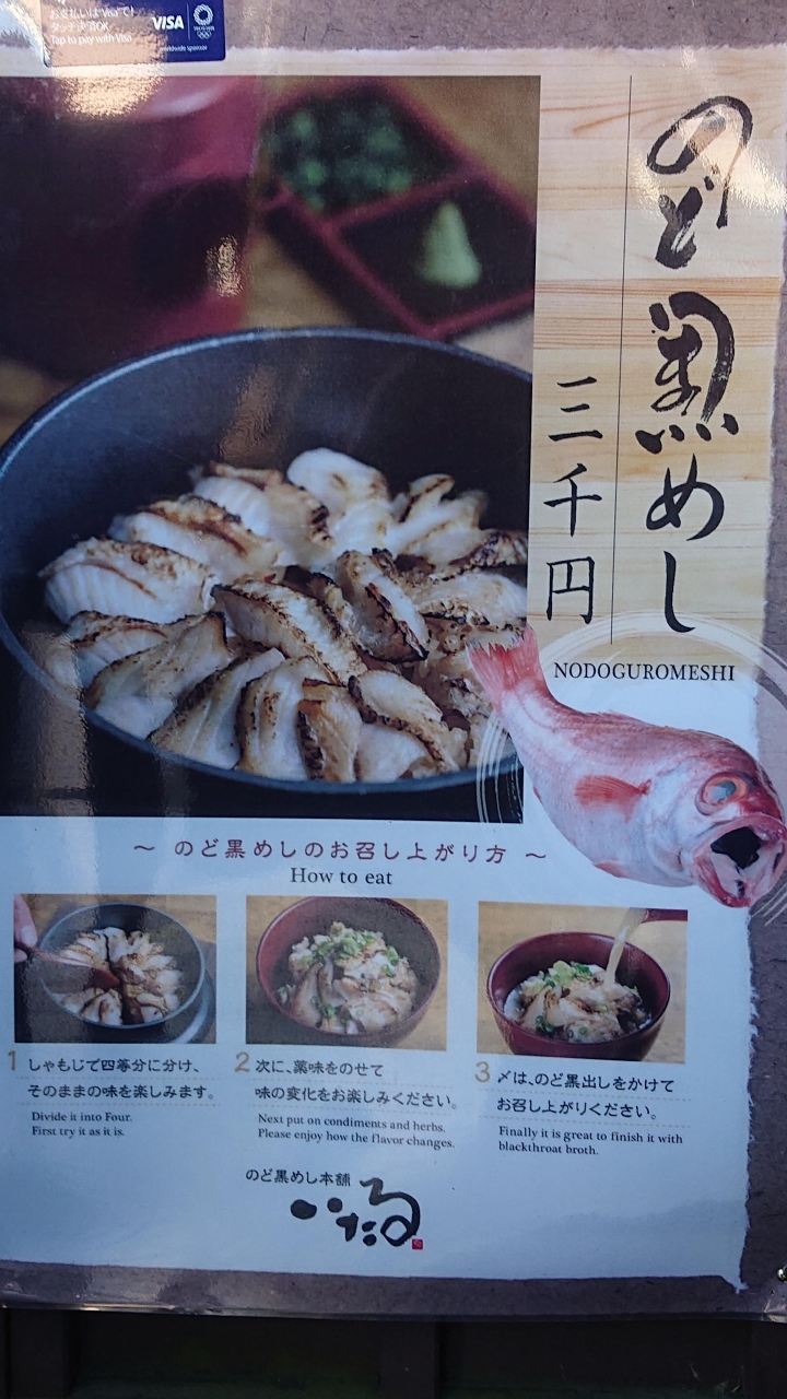 看板メニューののど黒めしはひつまぶしのように3度味わえます。最後にかけるお出汁は白濁したスープでコクがあり、のどぐろとご飯がさらさらと喉を通ります。