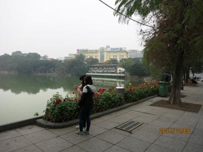 ハノイは寒かったのです。朝の気温が12〜13℃くらい。市民の憩いの場に...