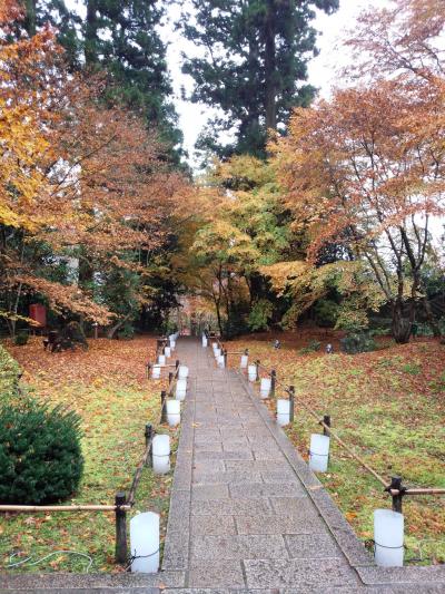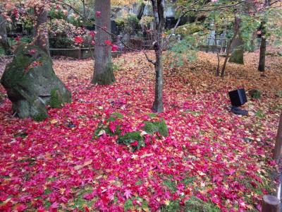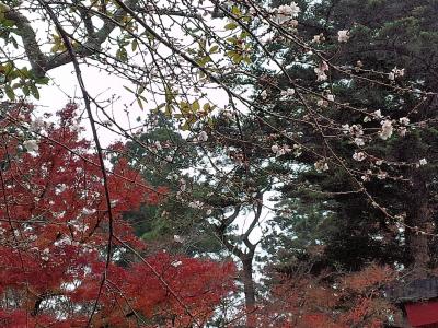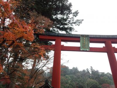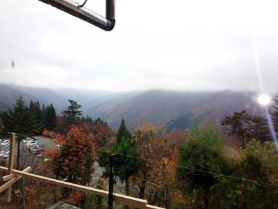 紅葉は神社はもう終わっていましたが、途中の道はとても綺麗な紅葉でした。駐車場から降りると標高1,100メートルということもあり、靄が出ていてジャケットを着ていても寒く、他の観光客の方は手袋をしてらっしゃる方も一杯いました。