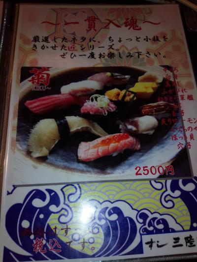 暁(3,300円)と菊(2,500円)と刺身の盛り合わせを頼みました。菊コースにはフカヒレの握りが入っていたので頼んでみましたが意外と美味しかったです。ただ、何度か違うテーブルの物を持ってきたりしていたのでそれはマイナス点です。- 旅行時期