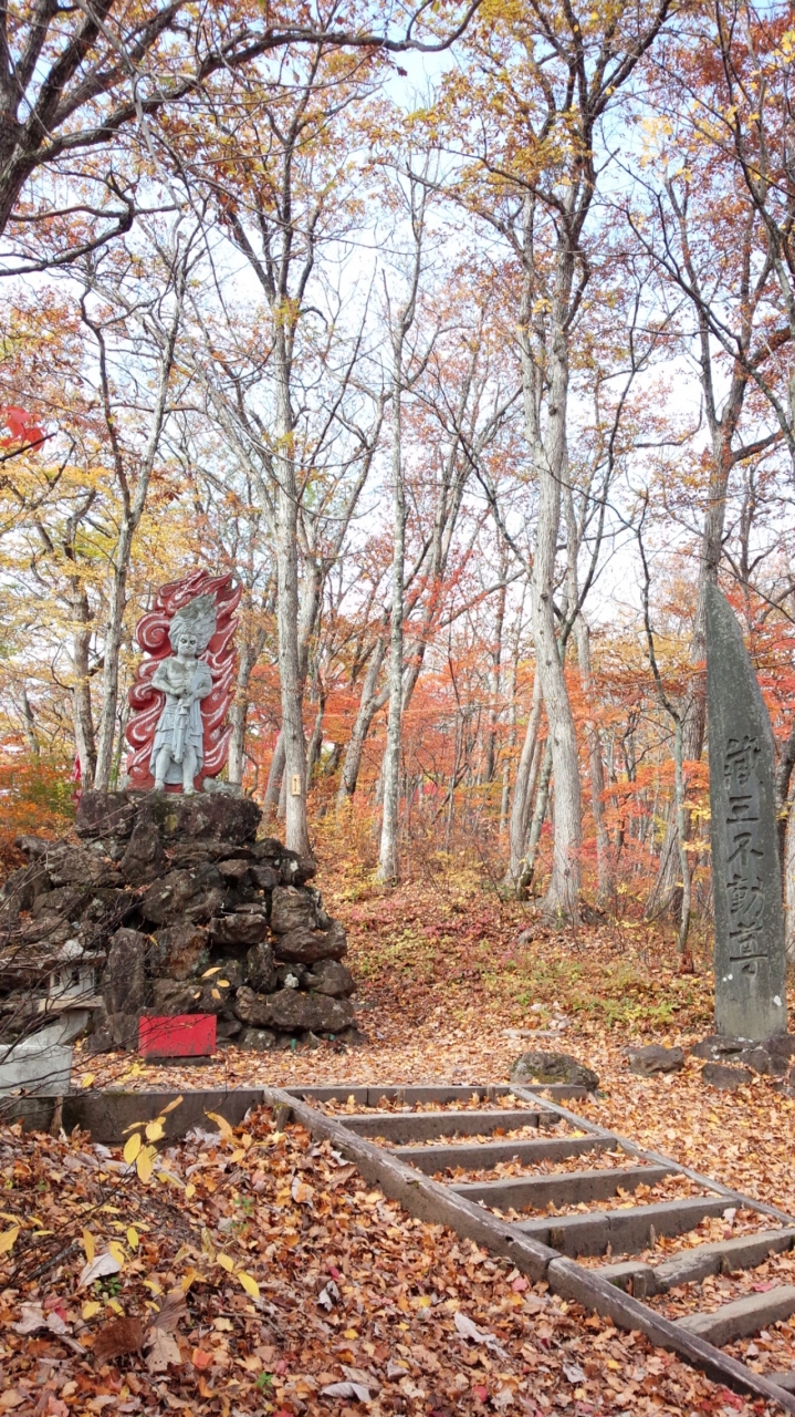 エコーラインの滝見台展望台からも見る事ができますが、不動滝の展望台から見た方が大きく見えます、蔵王の滝の中では1番大きいそうですが、すごく近くに行くわけではないので、紅葉のシーズンなど以外は寄らなくてもいいかなという感じでした。お不動様が祀られていました。