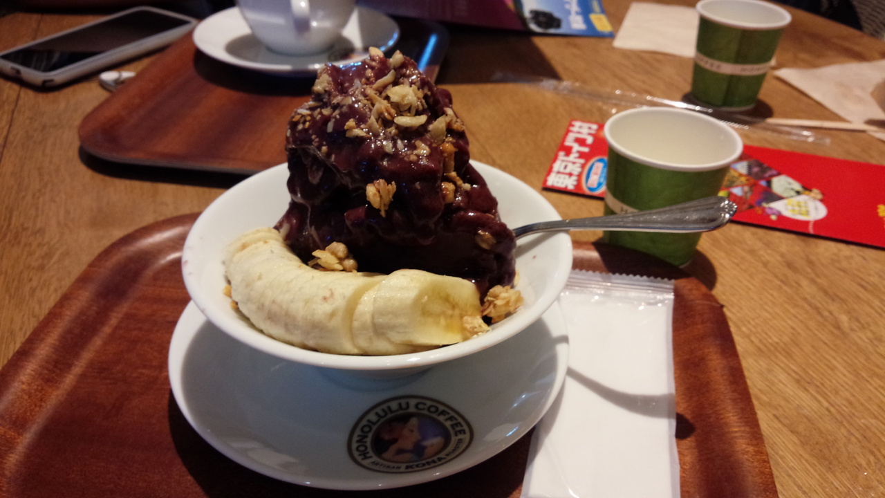 木更津のアウトレットの後に木更津 のイオンで買い物兼コーヒーブレイクをとってみました。木更津のイオンの中には4種類のコーヒーショップがありますが、ハワイ好きとしては、ホノルルコーヒーでしょうということで、アサイーボウルとコーヒーです。