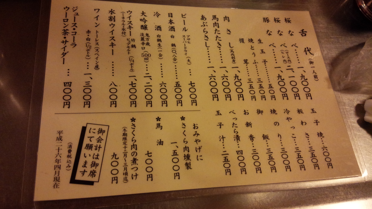 タタキより馬刺しの方がオススメです。馬刺しは今まで食べた中で一番美味しかったです。桜鍋も馬の味噌味のすき焼きのような味でとても美味しかったです。