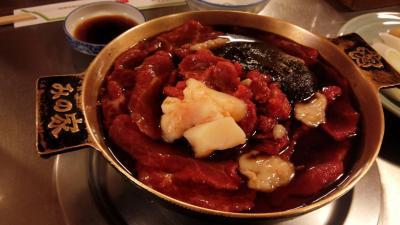 馬刺し、タタキ、桜鍋には白滝、おふ、ネギが付いているので豆腐とえのきを追加で頼みました。
