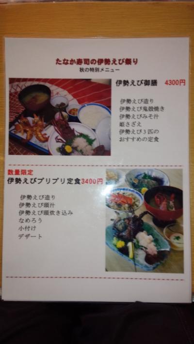 9月から10月伊勢海老祭りをやっていたので行ってみました。伊勢海老は小さめですが甘くて凄く美味しかったです。鬼殻焼き、お刺身、伊勢エビの味噌汁、姫サザエのメニューで4,300円ですが味噌汁も伊勢海老の身が入っているので3匹まるまる使っているので値段の価値は十分にあると思います。3人なので1人はランチの上寿司にしてみましたがお寿司も美味しかったです。お寿司のセットの茶碗蒸しは少し濃いめの味付けですが美味しかったです。