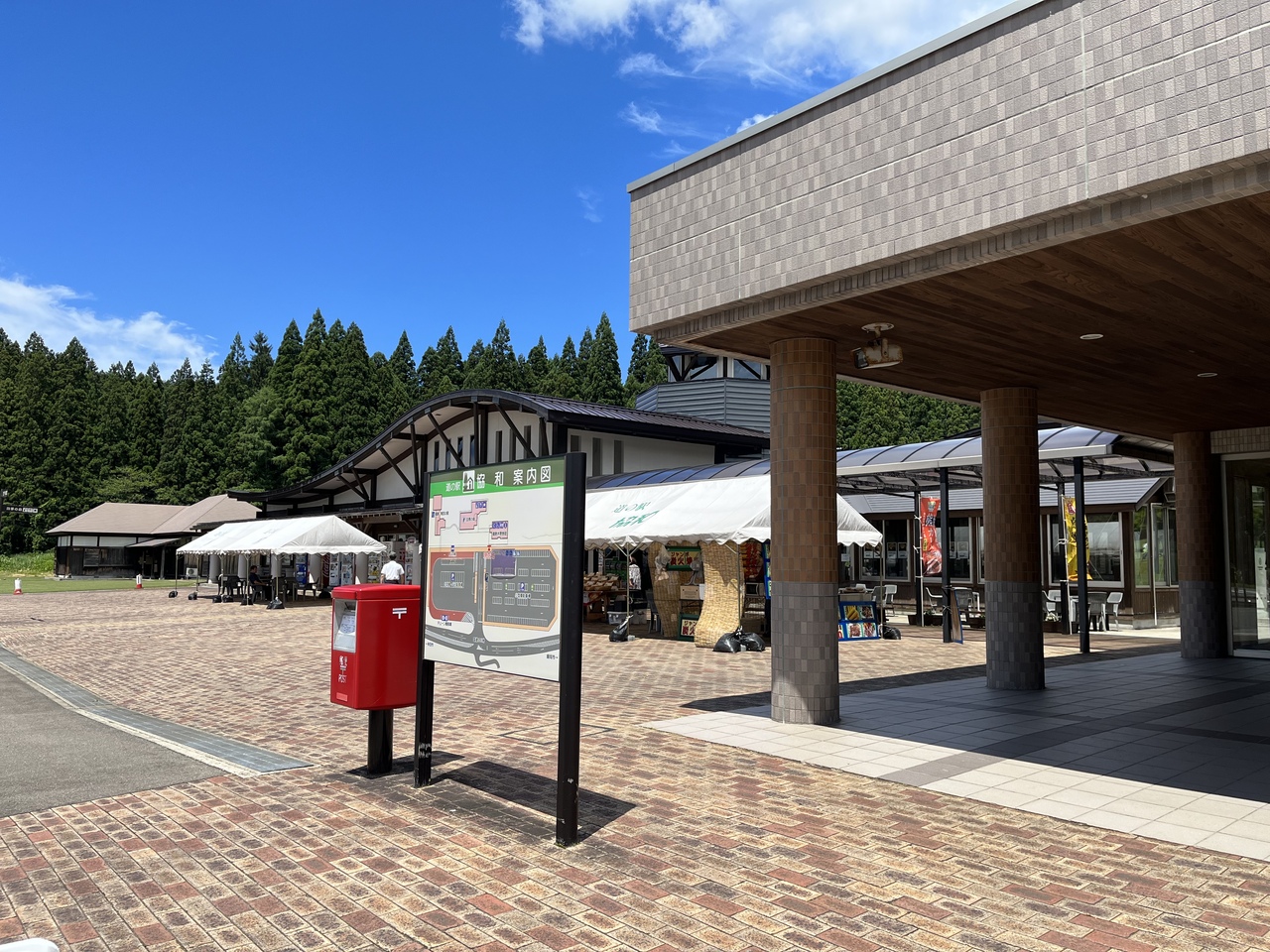 秋田市内から高速道路に乗り協和インターで降りましたが、そのあと角館近くまでトイレ休憩など出来る場所はここ以外にはほとんどなかったです。広々と立派な道の駅で駐車場も広くて、山菜や野菜も新鮮そうで、秋田ぽいお土産も売っていましたが、冷凍コーナーにはウサギ肉を売っていたのが印象的でした。食事の出来るレストランもあります。