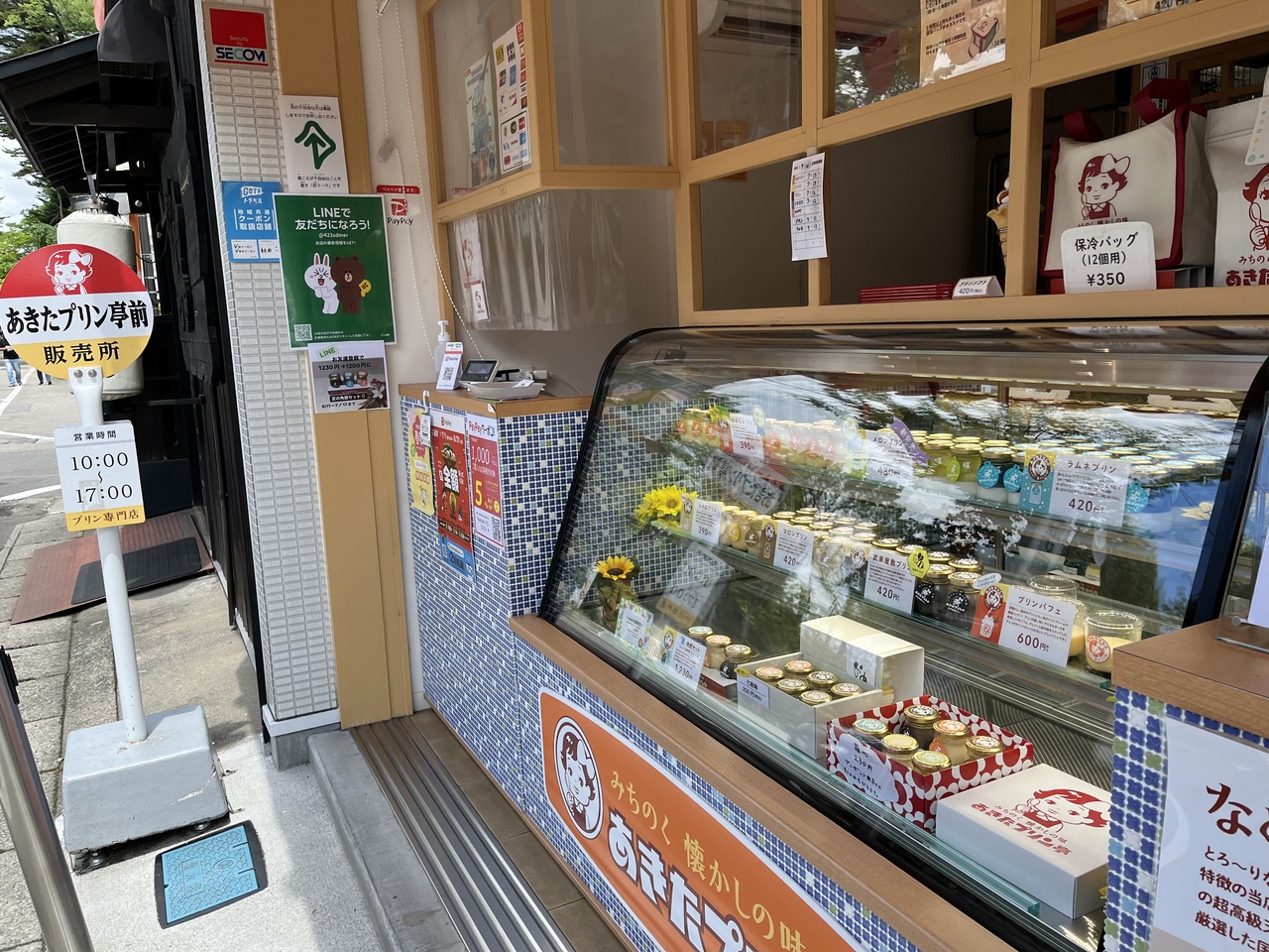 可愛い瓶に入っている美味しいプリンのお店です。なめらかとレトロのプリンを食べ、レトロの方が昔ながらの感じで好みでした。人気店の「さくらの里」に騙された私の心を美味しいスイーツで癒してくれました。角館武家屋敷の少しはずれにあるのですが、角館町屋館から食事中もたまに見ていましたがひっきりなしにお客さんが来ている様子で結構な人気店の様です。ただ食べるところはないので、角館町屋館近くのベンチなどで食べている方もいました。プリンだけでなくソフトクリームも人気の様でした。