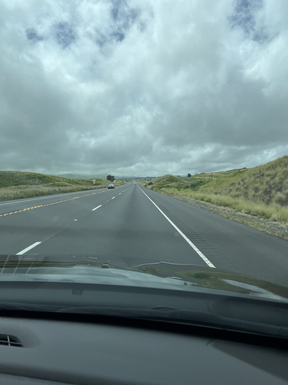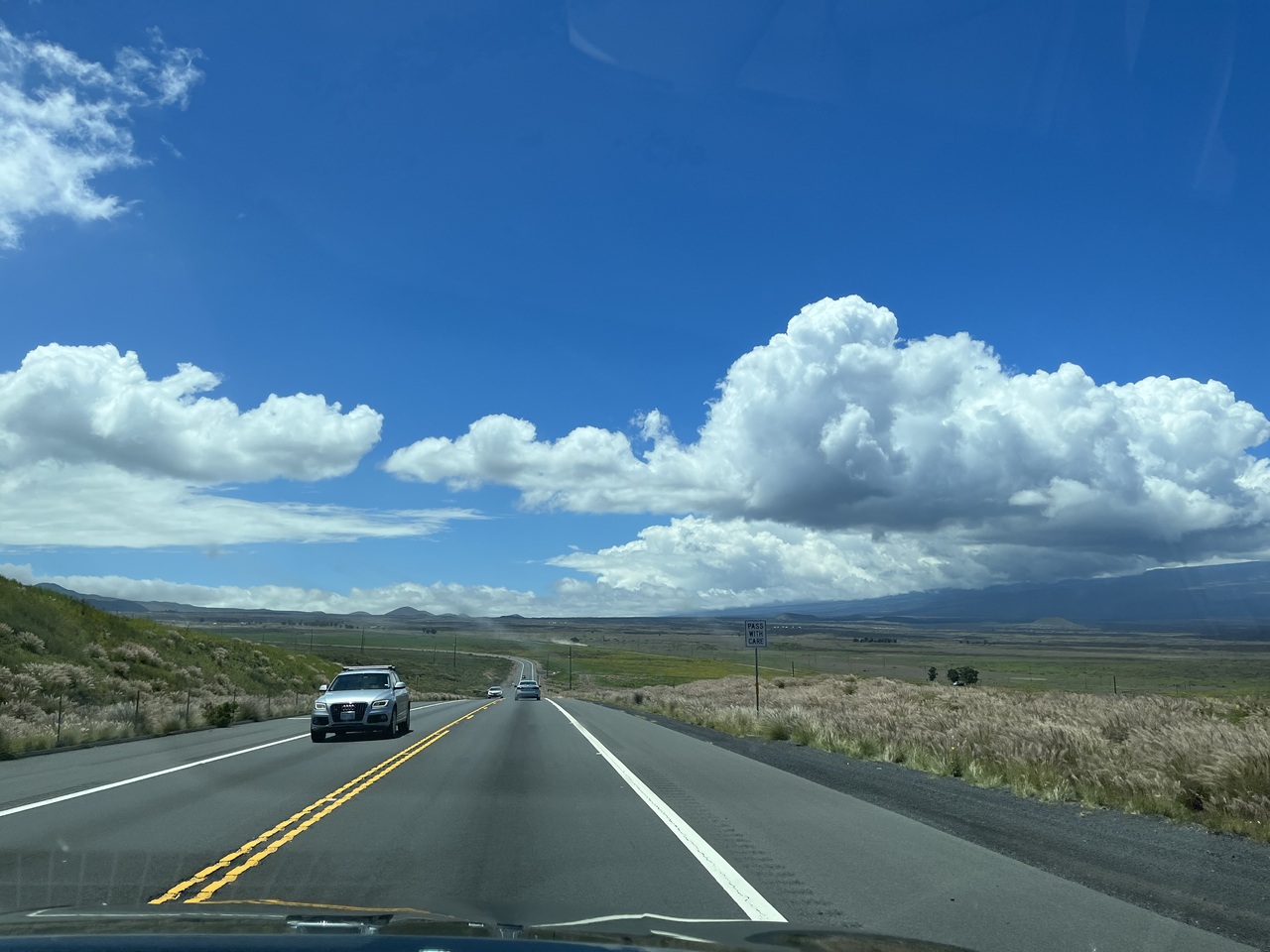 ワイコロアからヒロに向かう時に通る道です。何度か通っていますが標高の高い所で霧が出る事があります。ガソリンスタンドはないのでガソリンの量を確認してから通ってください。トイレはワイコロアから行くと米軍基地を超えたあたりに公園があるのでそこで休憩しないとヒロ近くまでないと思います。
