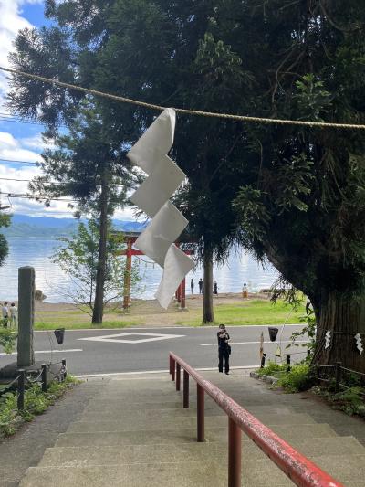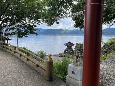 田沢湖を金ピカの辰子から乳頭温泉方面にまわると出くるのですが、こちらにも寄って観光しないと勿体無いです。湖の青さはこちらの方がより青く見えましたし、朱色の鳥居とのコントラストが絵になりました。神社の名前はお殿様が座った石から名付けられた神社のようで、辰子姫が祀られ美に御利益があるようなので女性の方なり是非寄ってみてください。