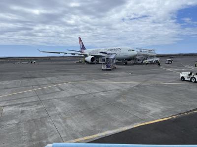 コナ空港は相変わらずタラップで乗り降りする方法で、天気のいい日は機体が近くで見れ旅行気分としては最高ですが、カイルアコナのあたりは雨は少ないとは思いますが、雨の日には困ってしまうかも。荷物の受け取りがパオのような場所だったのが普通の建物の中で受け取りました。レストランは1つありますが、飛行機がディレイした時などは待合も屋外なので開放的でいいのですがちょっと困るかも