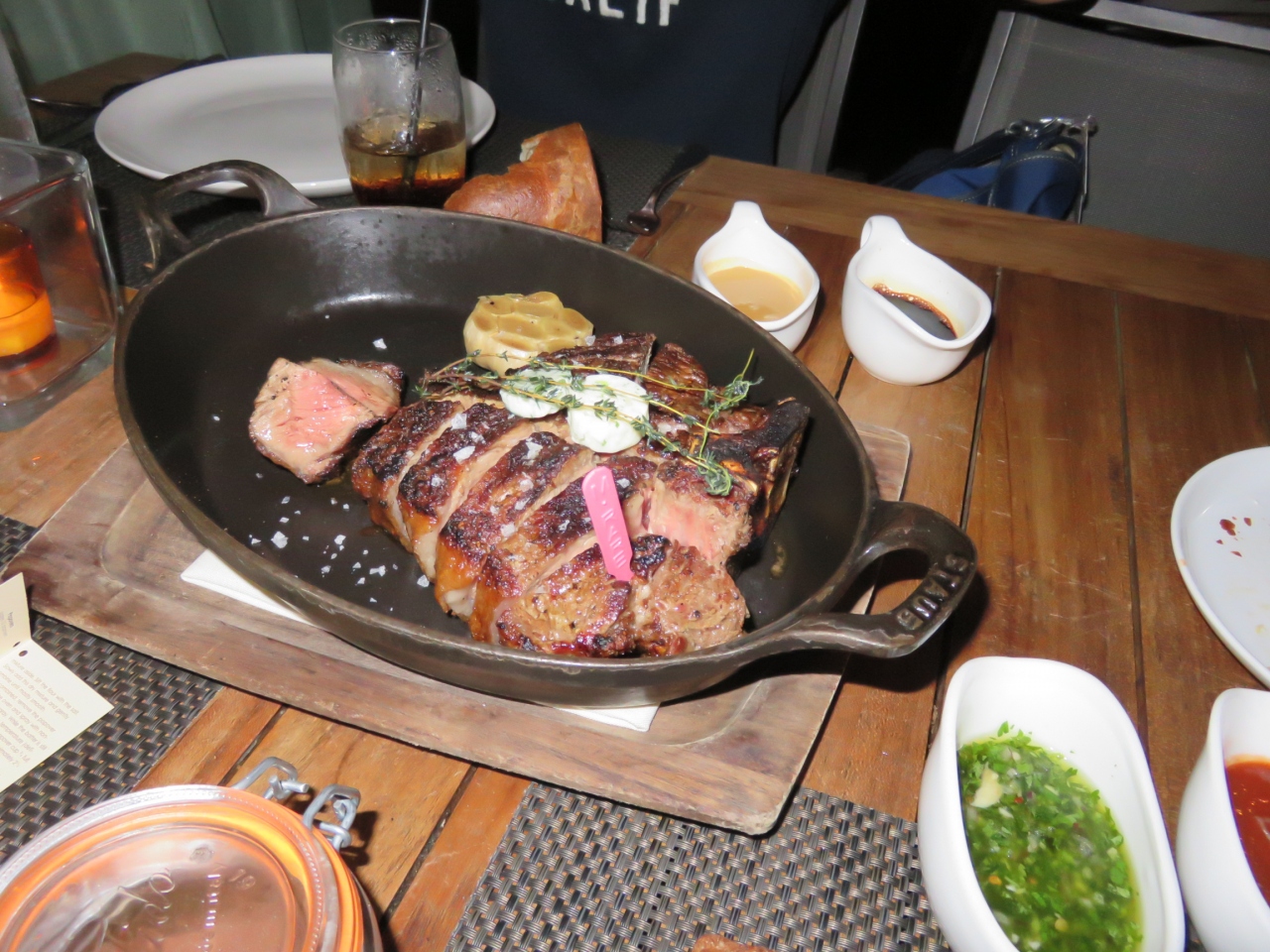 ポーターハウスステーキ、オイスター、蟹爪、サラダを頼みました料理はどれも美味しかったです、蟹爪は普通です。最初に出てくるポップオーバーもマリポサよりもクリームはこちらの方が好みでしたし、レバーペーストも美味しかったです。でもワインを頼むと安そうな物は品切れのようで思ったよりも高いものを頼んでしまい、少し予算オーバーでした。