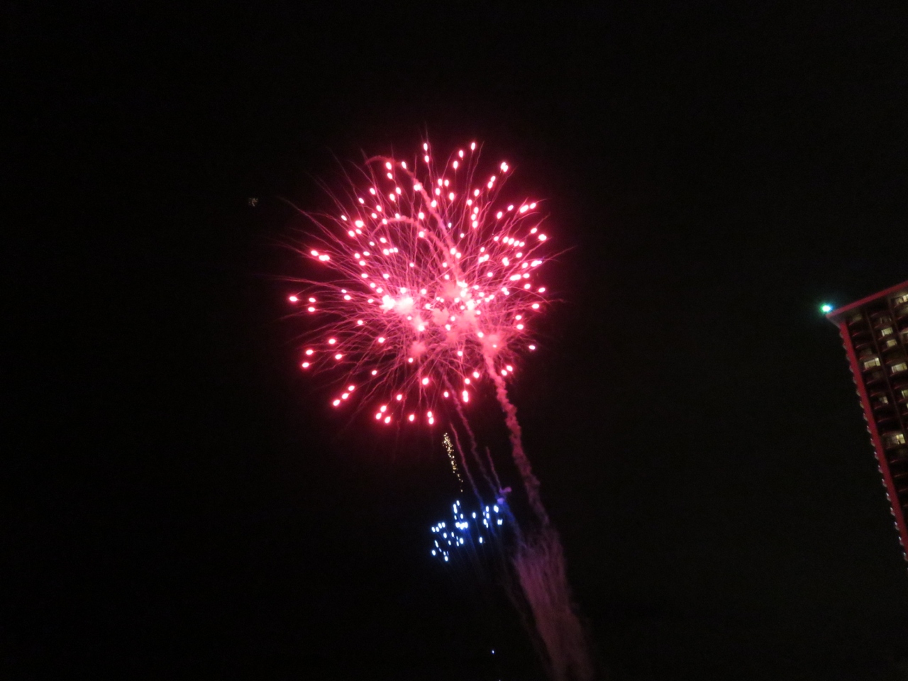 ヒルトンに金曜日に泊っているとこのあたりで花火を見てから歩いてカラカウア方面に行って食事をしに行きます。花火の打ち上げ場所にも近く迫力のある花火を見ることができるのでお気に入りの場所です。