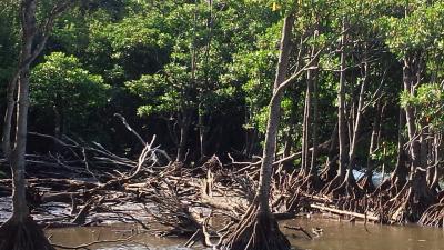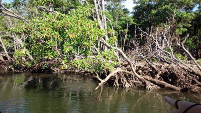 前回より潮がひいていてマングローブの根っこがよく見えました。ただ潮がひいていると引き返す場所が手前になるそうです。秋だったので、台風で倒れたマングローブなどもありました。一度行った事があってもしばらく経って季節などが違っていたので新鮮な印象でした。