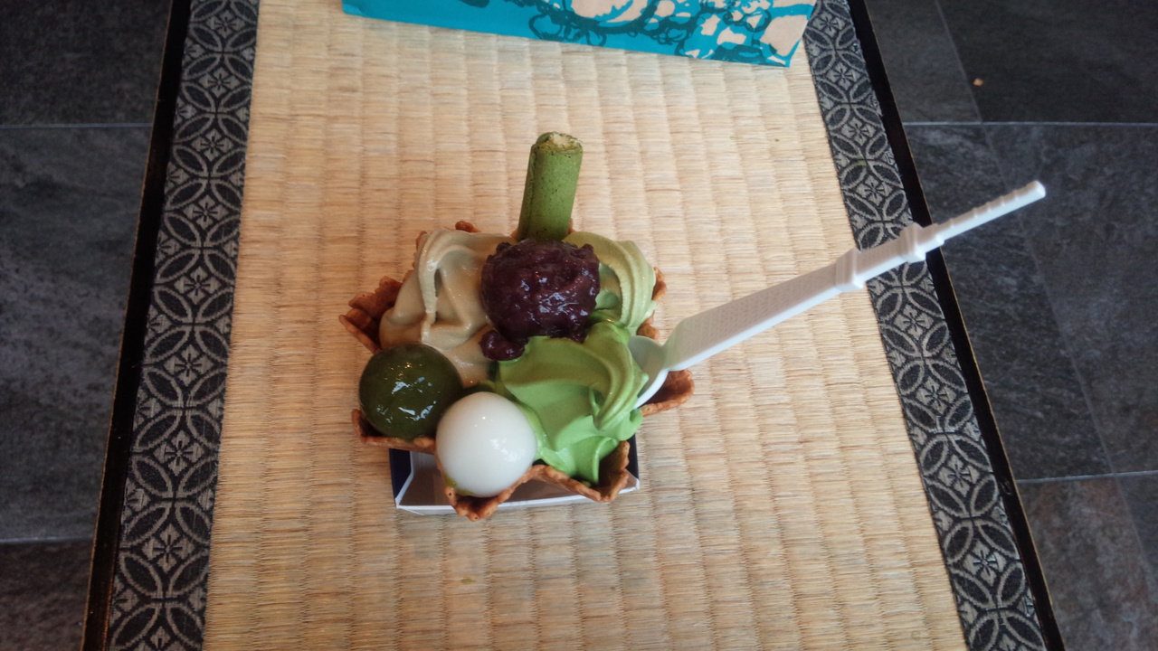 辻利で三色のソフトクリームを食べました。670円と安くはないですが、ほうじ茶、玄米茶、抹茶それぞれのソフトクリームの味の違いがちゃんとわかるぐらいお茶の味が濃く美味しかったです。ただソフトクリームの入っているコーンの部分が少し触っただけでボロボロしてしまいました。その点はマイナスです。