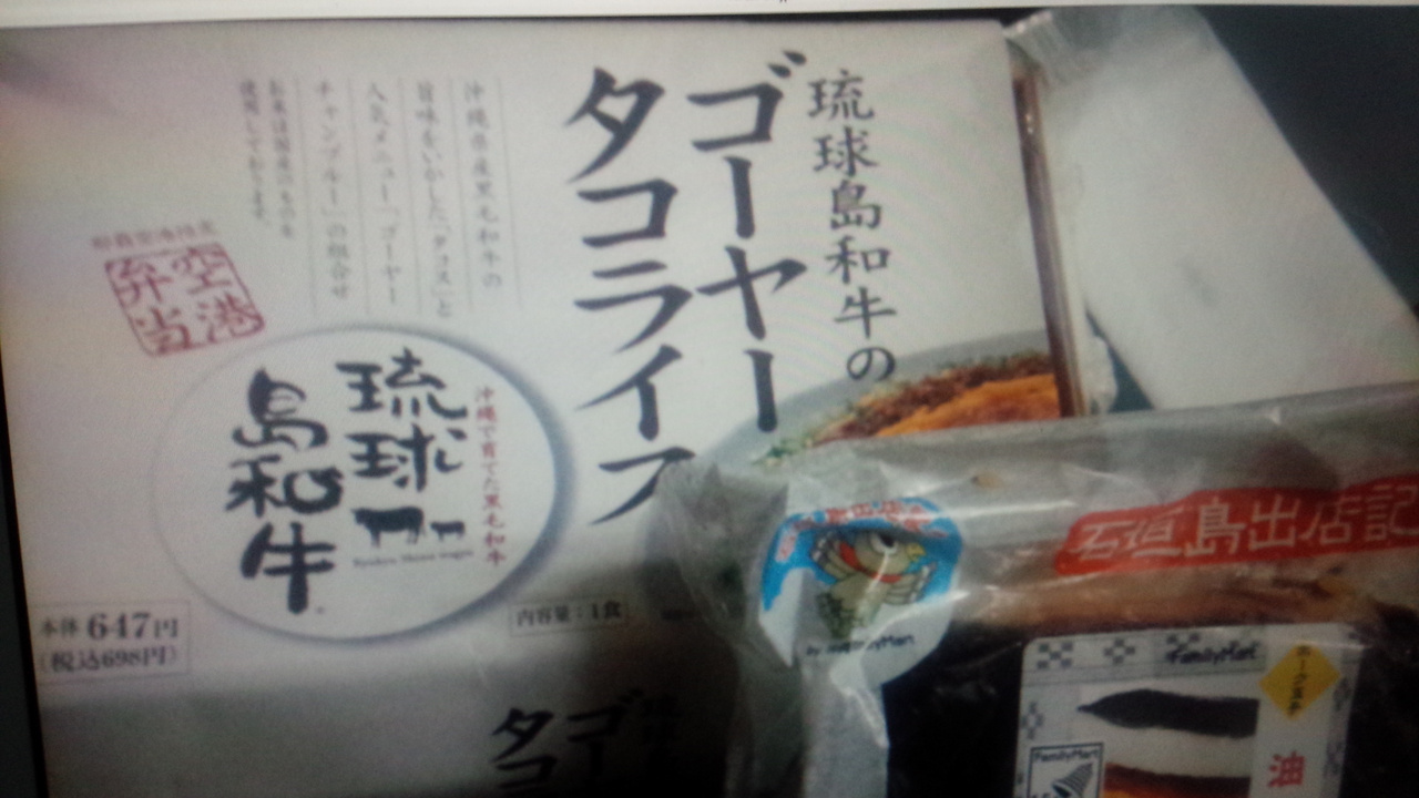 石垣島にファミリーマート初出店ということで、目立つように沖縄限定のおにぎりやお弁当が目立つところに置かれていたので、夕ご飯を食べるほどでもなかったので購入しました。微妙な時間帯の便の時に他の店の空弁やじゅーしいもいいのですがコンビニで沖縄限定ものを買って機内で食べるのも面白いかもしれません。