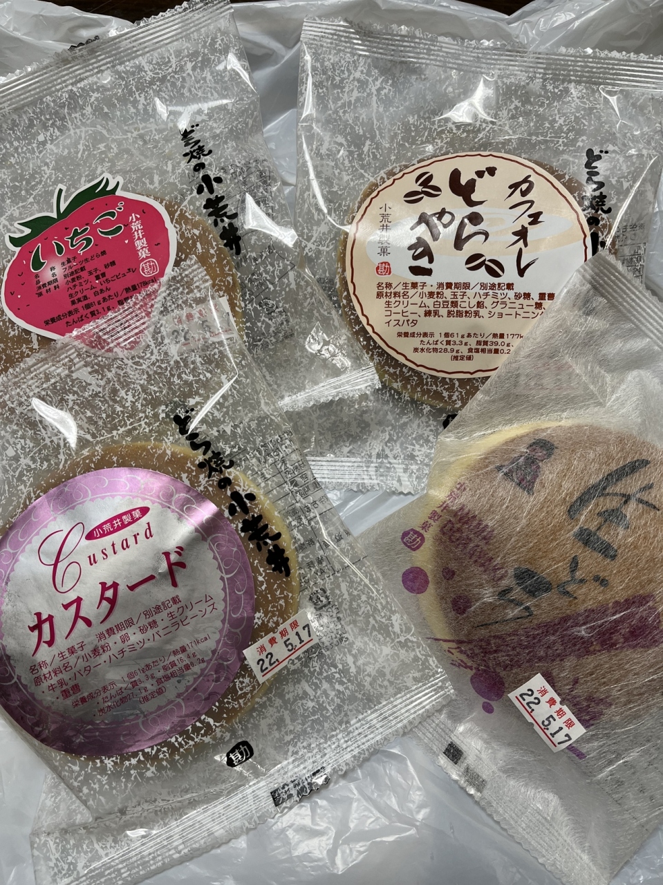 水上の最近の名物が生どら焼きらしく何店かありましたが、一番口コミの高かった小荒井製菓さんで購入してみました。生どら焼きは何種類もあり、賞味期限が長ければ全部を買いたい所ですが、ノーマルな小倉の他にカフェオレ、いちご、カスタードを購入しました。カスタードは食べていませんが、食べたどら焼きはどれもとても美味しかったです。外の皮も美味しいので近くに行けば、是非また違う種類も買いたいどら焼きでした。道の駅水上水紀行の近くで、和服姿の人形が目印です。