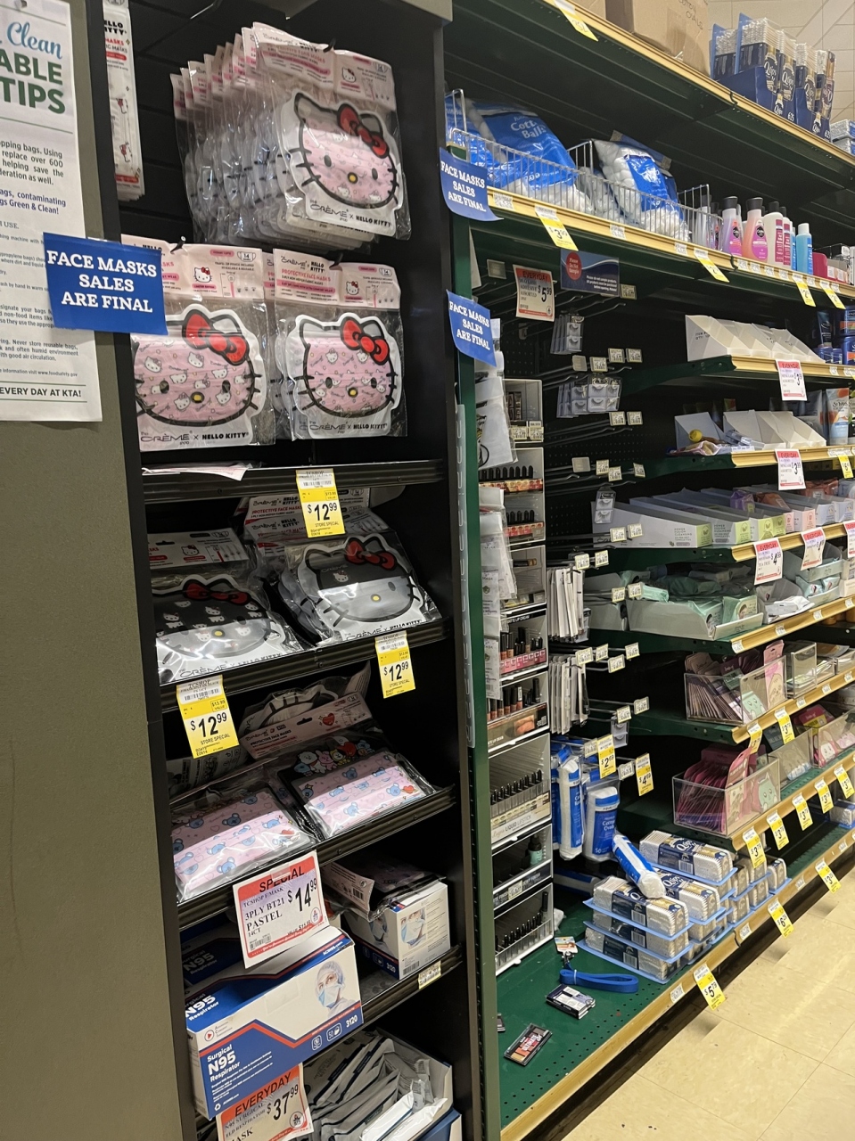 ヒルトングランドバケーションのキングスランドからは少し車で走りますが、日系の方が始めたレストランだけあり日本の調味料など日本人好みの品揃えのスーパーです。前回ここで買ったお肉が一番美味しかったので今回はバーベキューですお肉を買ったのはここだけなので比べる事はできませんは美味しかったです。可愛いキティのマスクを売っていましたがハワイ島でマスクをしている人は見かけなかったでs。