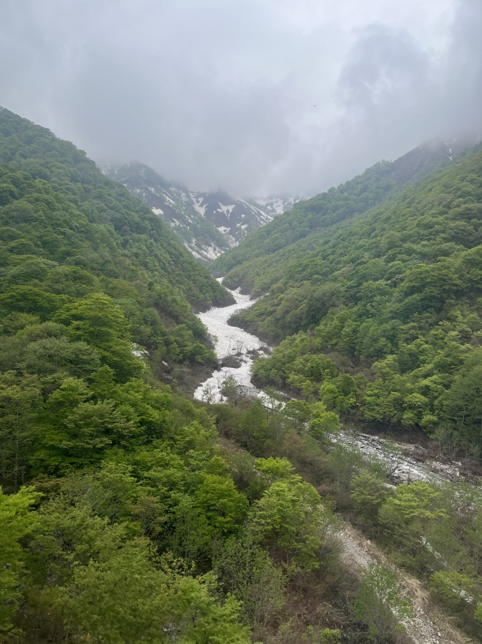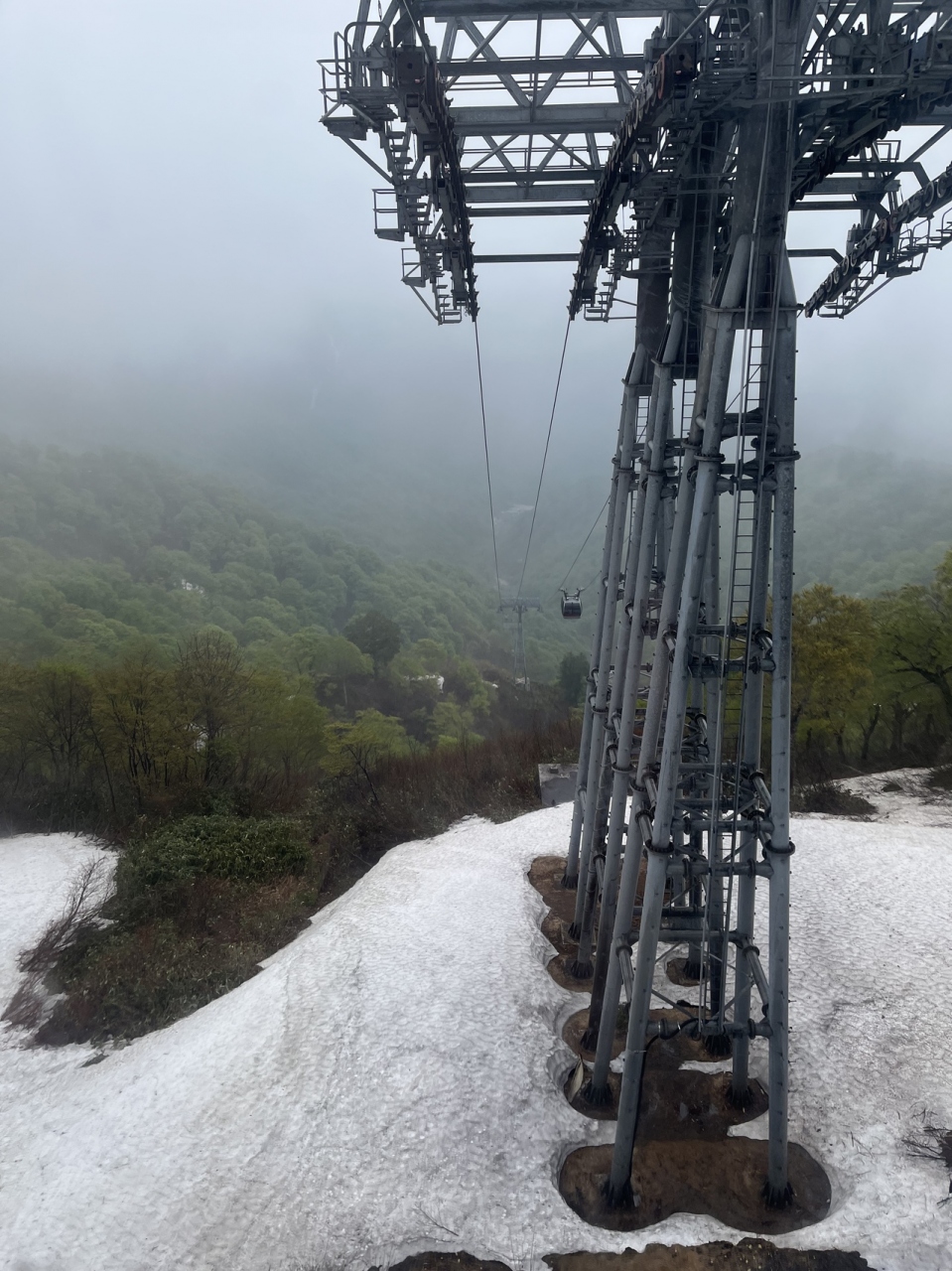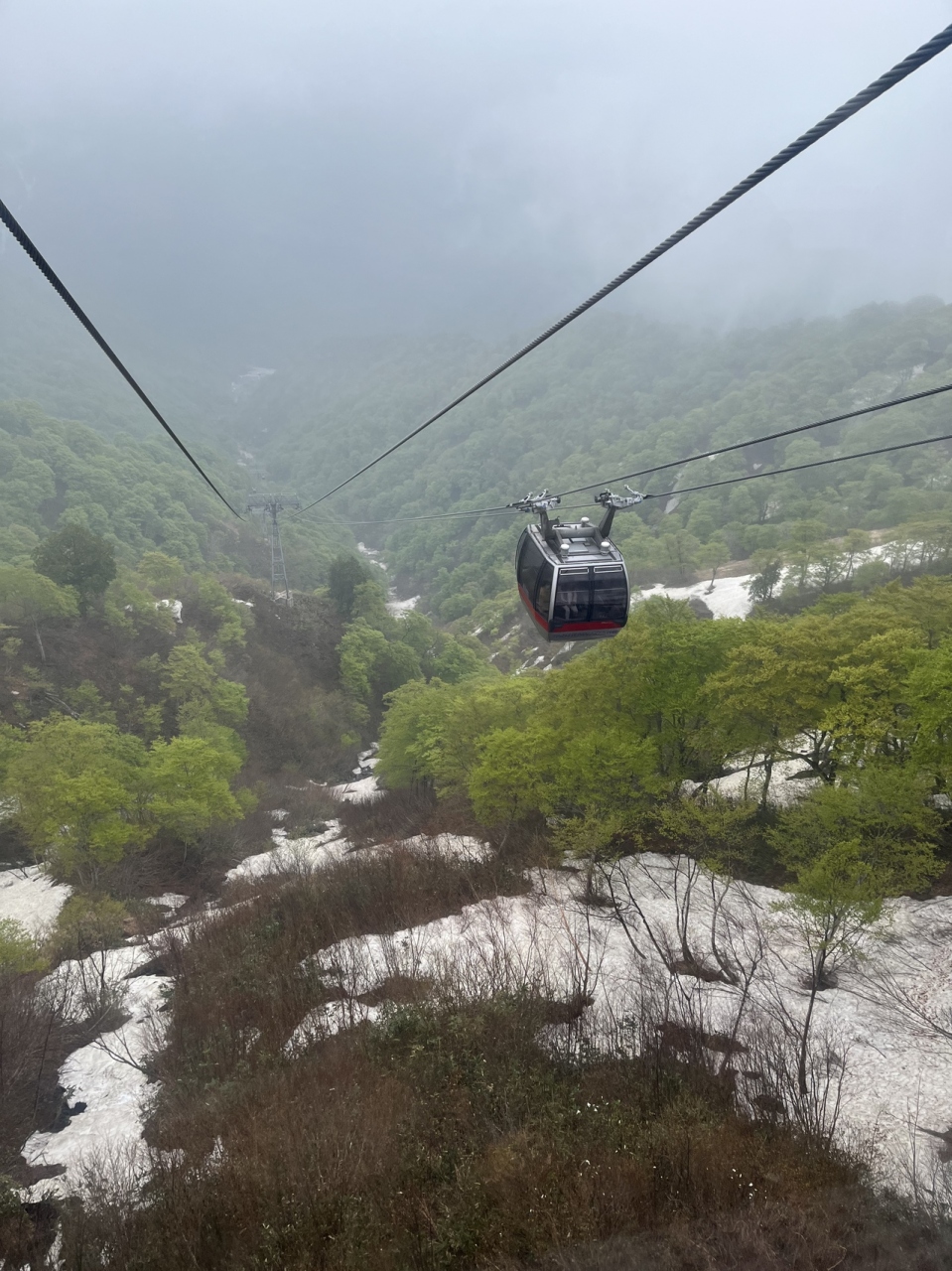 頂上は景色は殆んど見えなかったですが、ロープウェイに乗っている途中は残雪と新緑が両方見えてなかなかいい景色でした。ゴールデンウイーク中の土日祝日には夜空のナイトクルージングという残雪にデジタルアートを映し出すイベントがやっていた様でそれも素敵そうでした。5月中旬でも雪がたくさん残っていて下とは気温が違いますので服装、靴など気をつけてください。- 旅行時期