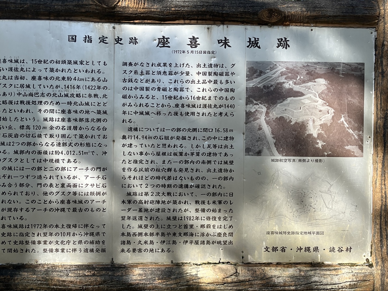 世界遺産のグスクは首里城、今帰仁城、中城、勝連城と行った事があるのでグスクとしては残るひとつの座喜味城に行きました。こちらも立派な石垣が残っていてほかのグスクと似たようなつくりですが天気のいい日だったの海も見えていい景色でした。観光客は外国の方も多かったです。入り口に近い駐車場は停めれる台数が少なくあまり空きが無かったので、観光シーズンの休日には停めるのは厳しいかもです。ちょっと離れたところには南側駐車場もあるので混んでいる時はそちらを利用する事になると思います。