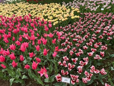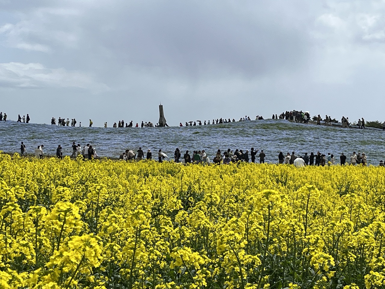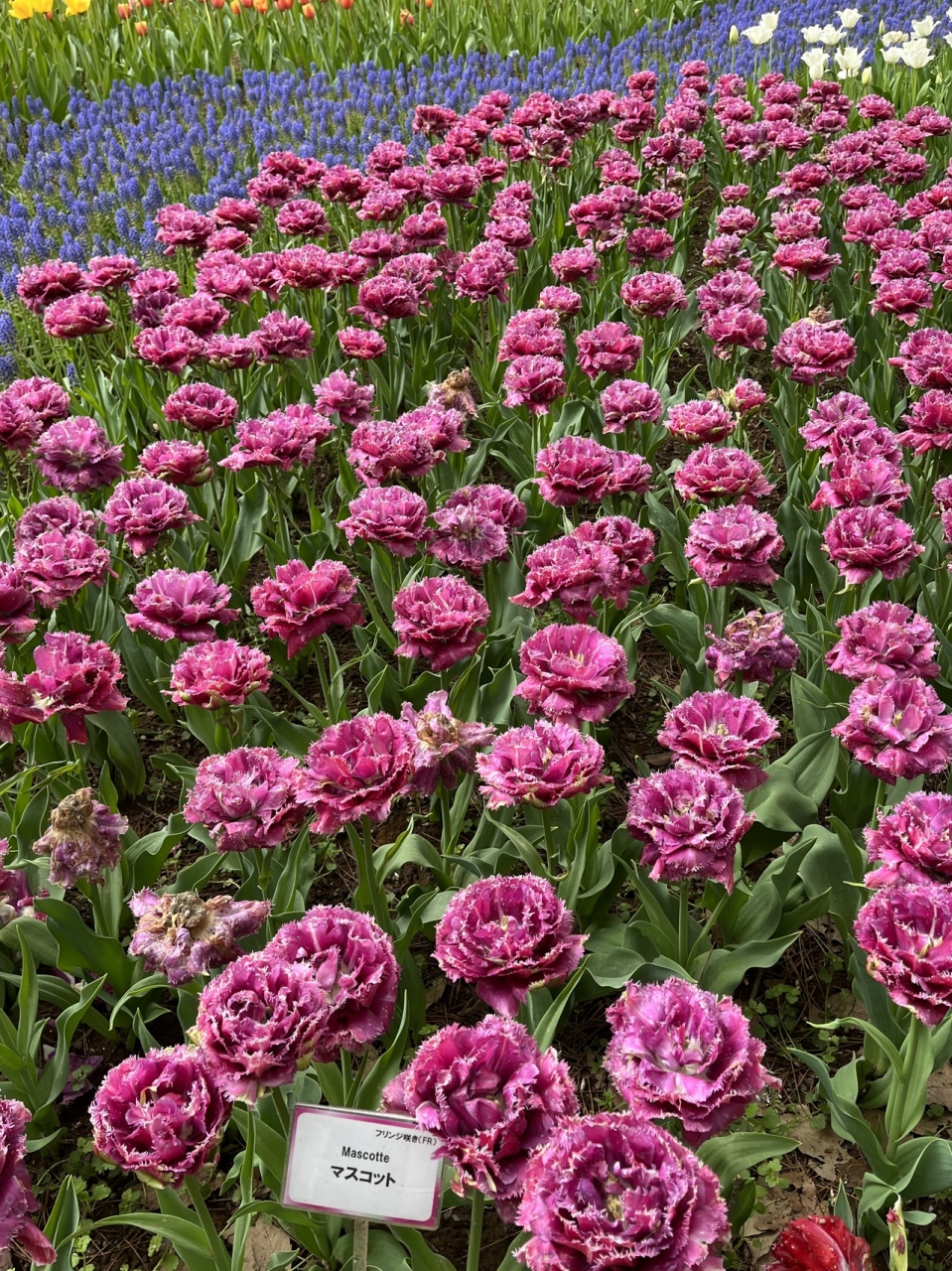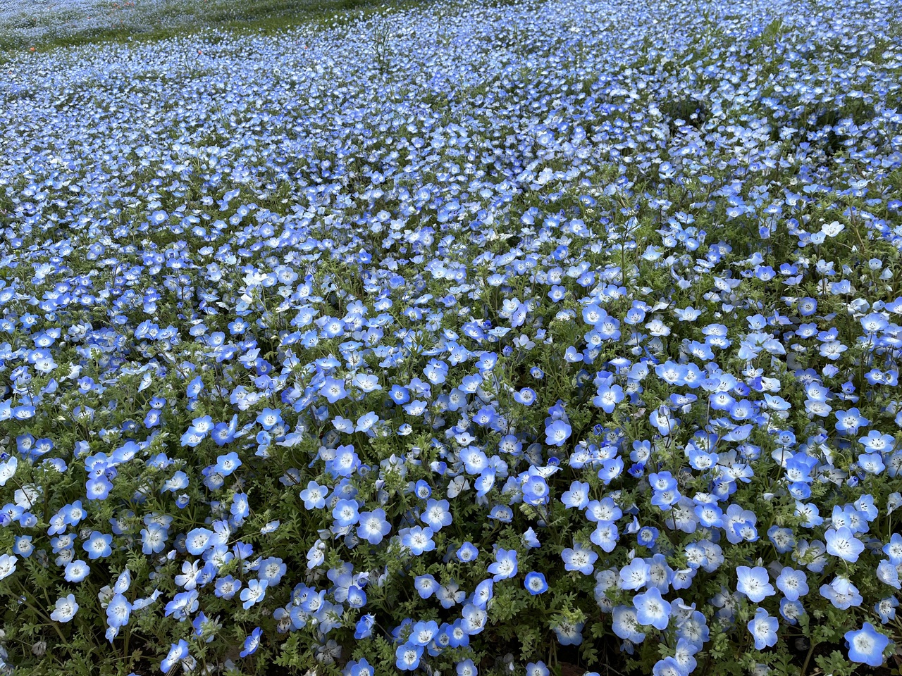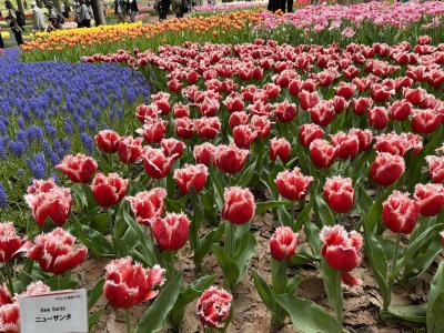 すごく久しぶりに海浜公園のネモフィラを見に行きましたが平日でも混んでいました。高速の出口も混んでいたのでひたち港の方まで行き海浜口駐車場に入れました。ネモフィラはもちろんほぼ満開で綺麗でしたが曇り空だったのでちょっと残念でした。それよりも見頃終わりと書いてあったチューリップがまだまだ綺麗で、種類が330品種もあるらしく薔薇ぽいもの牡丹ぽい物など見た事のない種類があり、とっても綺麗で最高でした。ネモフィラよりチューリップの方がいいねと言っている方もいて私もそう思いました。公園内の屋台は人気のあるお店は結構並んでいました。