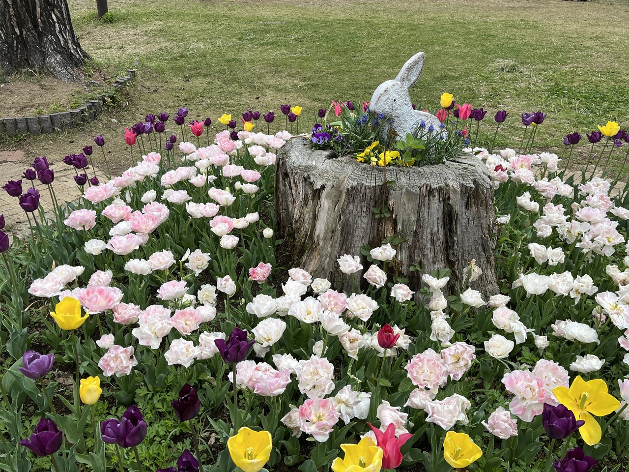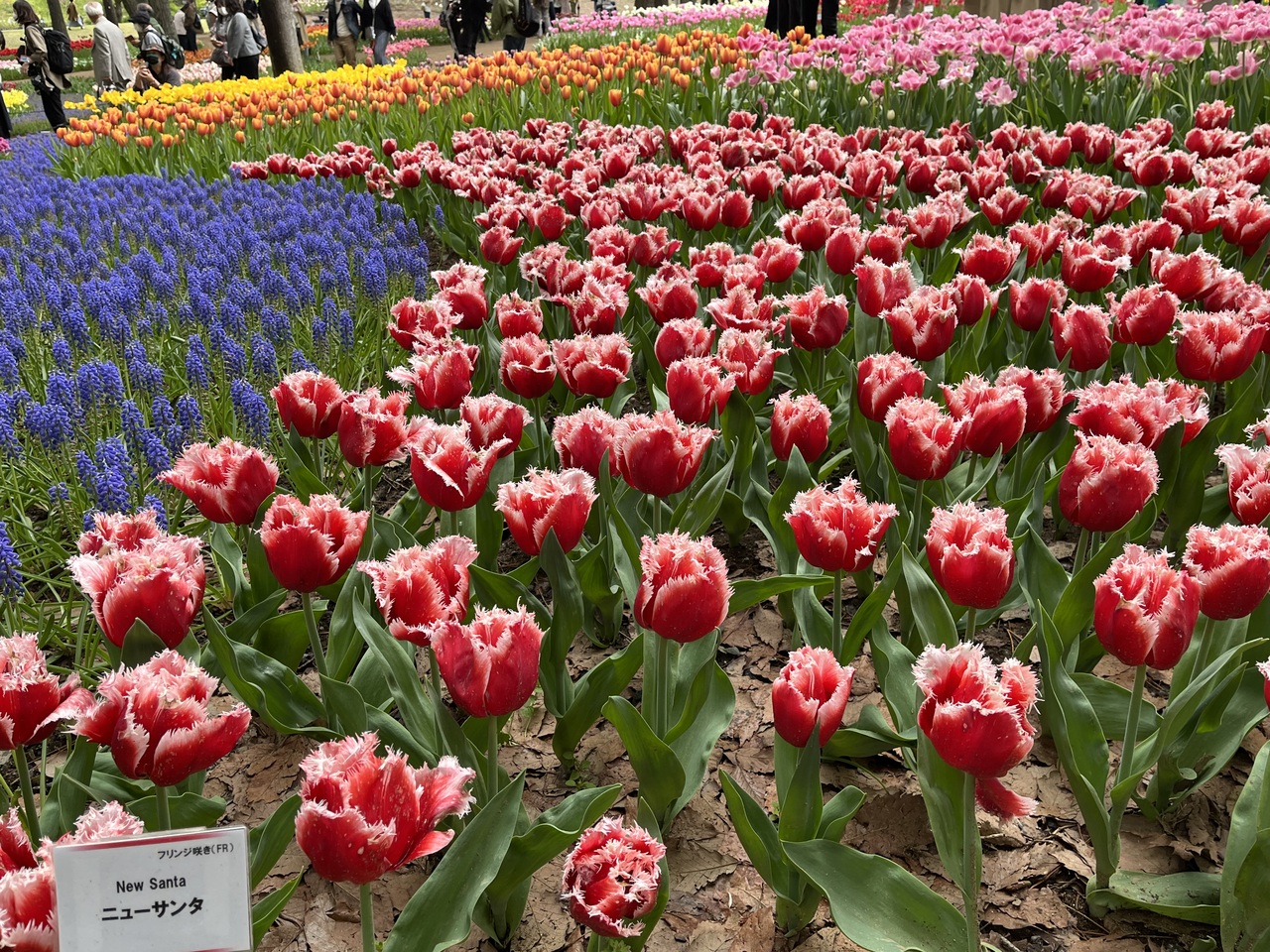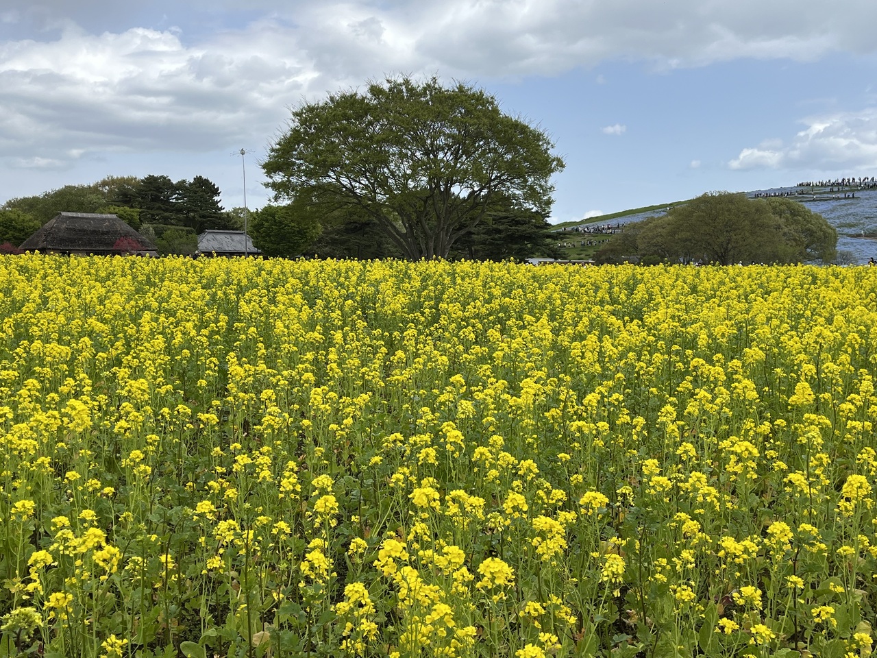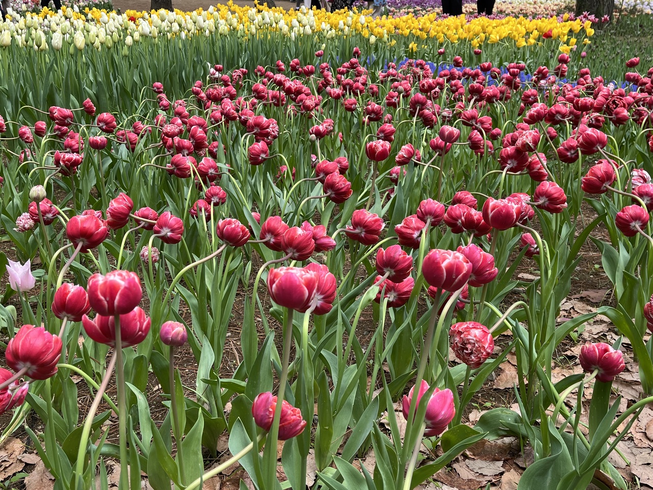 すごく久しぶりに海浜公園のネモフィラを見に行きましたが平日でも混んでいました。高速の出口も混んでいたのでひたち港の方まで行き海浜口駐車場に入れました。ネモフィラはもちろんほぼ満開で綺麗でしたが曇り空だったのでちょっと残念でした。それよりも見頃終わりと書いてあったチューリップがまだまだ綺麗で、種類が330品種もあるらしく薔薇ぽいもの牡丹ぽい物など見た事のない種類があり、とっても綺麗で最高でした。ネモフィラよりチューリップの方がいいねと言っている方もいて私もそう思いました。公園内の屋台は人気のあるお店は結構並んでいました。