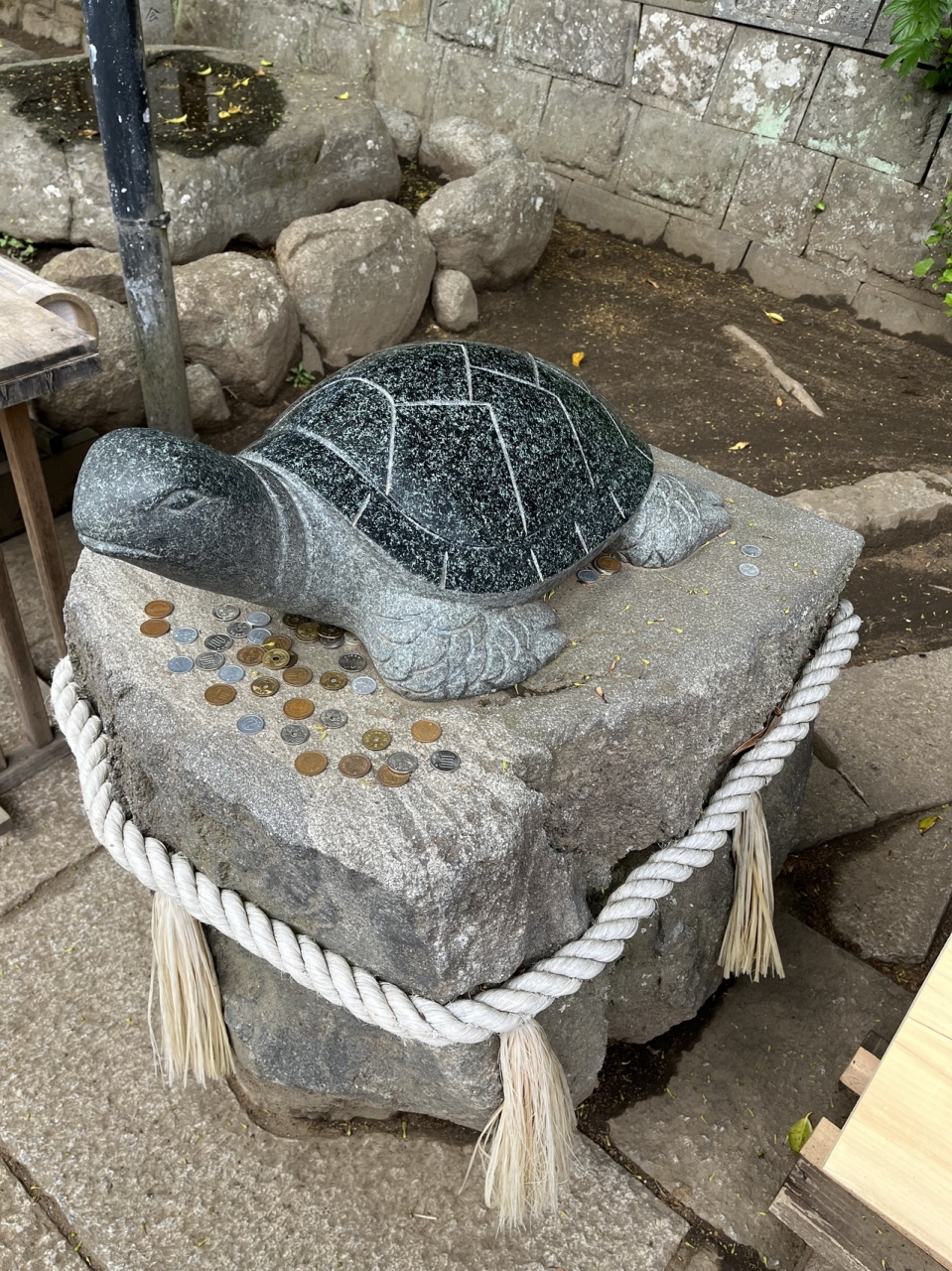 ひたちなか海浜公園のネモフィラを見た帰りによりました。御柱神社、大洗磯前神社とともに茨城3社の一つと言われていて他の二つは行った事があるので最後の一つです。海の見える鳥居がありいい景色です。駐車場から行くと通らないですが、椿などの生える参道がとても素敵です。健康長寿などの他に宝くじが当たるなどの金運のご利益がある様です。金運についてはお参りし、守りを買って、亀さんを撫でるようです。大洗磯前神社と兄弟社なのでいっしょに大洗磯前神社をお参りした方がいいらしいです。