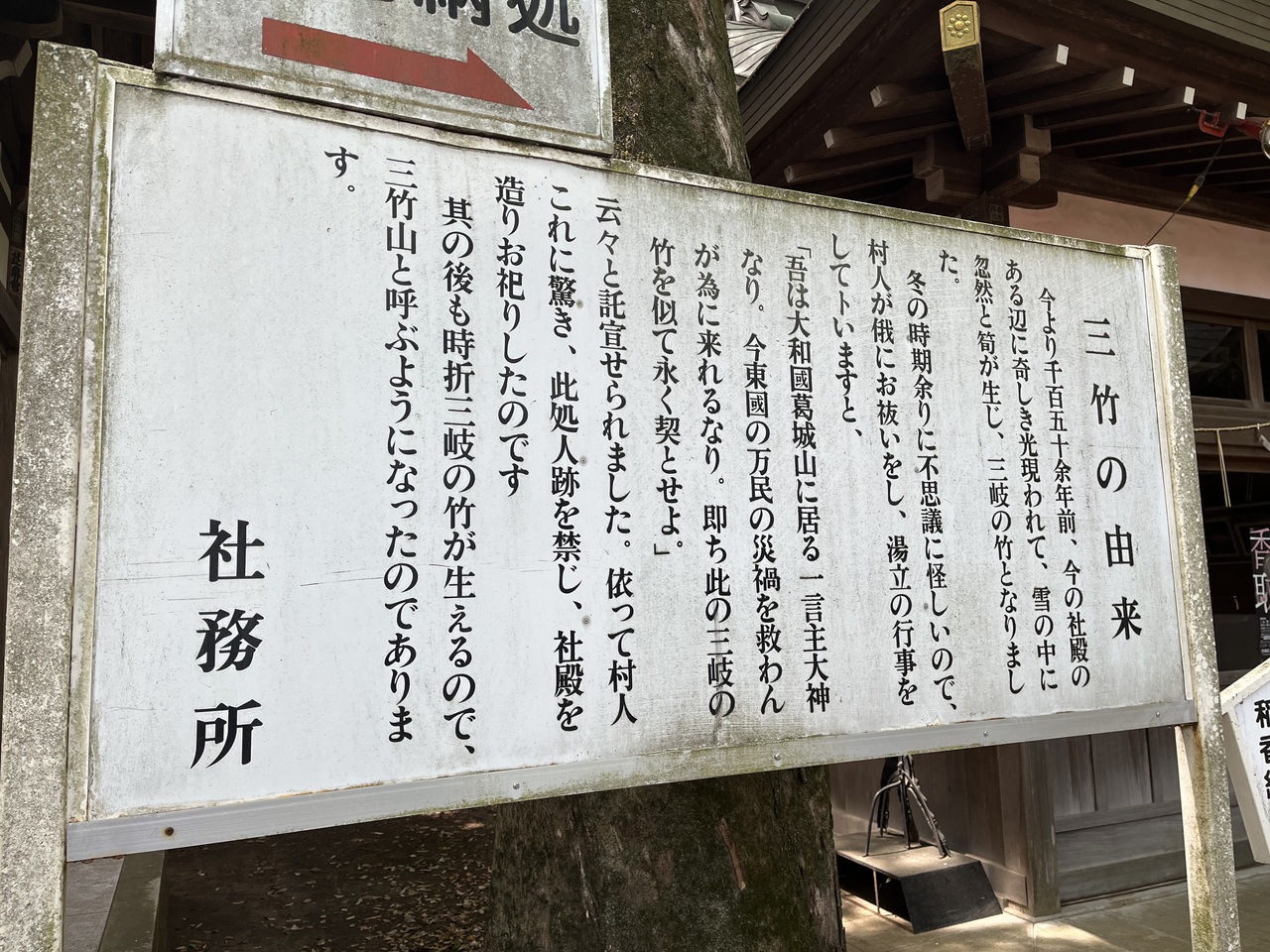 道の駅常総のオープニングに行った時に寄りましたが、国道にも看板が何箇所も出ているので気になる神社です。ゴールデンウイークの中の平日に行きましたが次次と人が来て人気の神社です。鳥居は4つ続いていてその奥に本殿があります。3つに分かれた竹は神様と思い大切にするという事で御神木より目立つ場所にありガラスケースの中にも飾られています。一度の祈願でも一言の願いでももかなえてくれる神社で古くからの歴史のある神社です。奥の駐車場には藤の花も綺麗に咲いていました。
