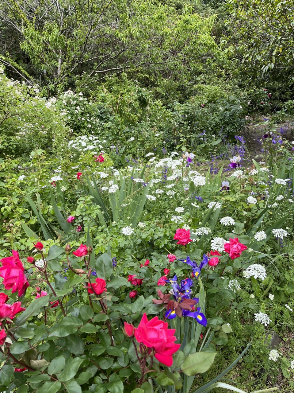 ゴールデンウイーク開けに、行きましたがバラが結構いっぱい咲いていて、他の花もいっぱい咲くとても素敵なイングリッシュガーデンです。猫さんがいっぱいいるのがので猫嫌いの方には厳しいかもしれません。後車でないと行くのは厳しそうですが、途中の道がダンプなども通る細い道なのが少し難点です。駐車場は広く第二駐車場もあります。