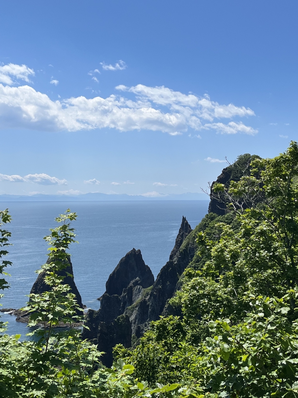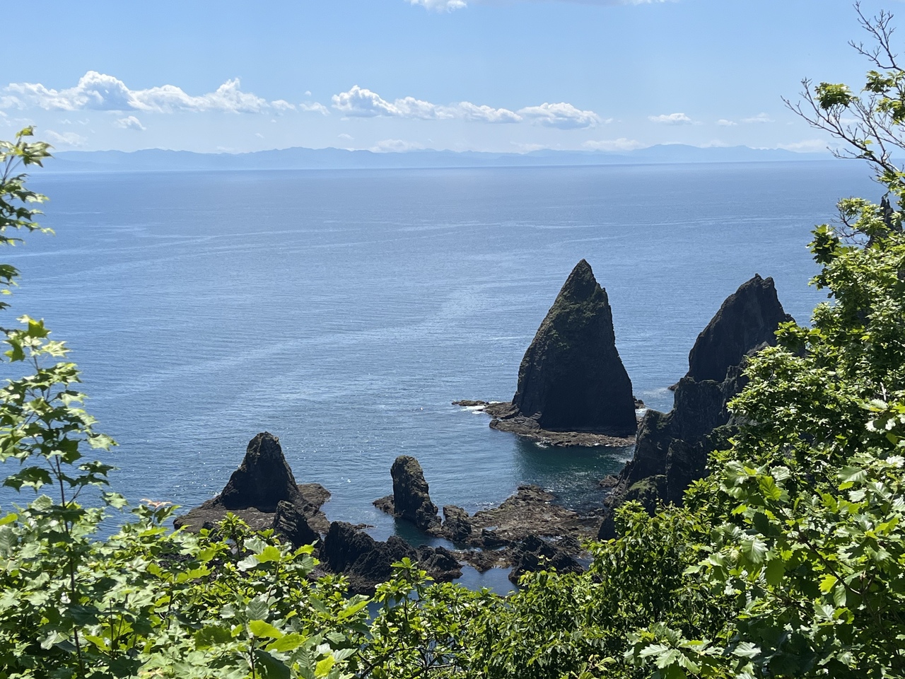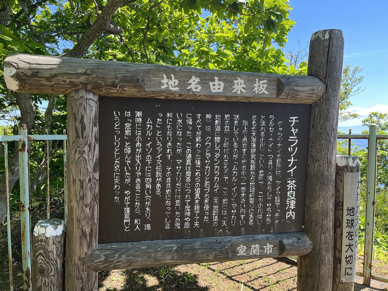チャラツナイとはアイヌ語でチャラルセ.ナイ滝をなしてサラサラと流れる小川という意味で海藻研究施設から地球岬寄りにあるようですが、観光地としては天地創造の際に使われたマサカリが岩になったマサカリ岩などの奇岩が青空に映え絶景でした。駐車場もあるので天気のいい日は寄ってみるといいです。