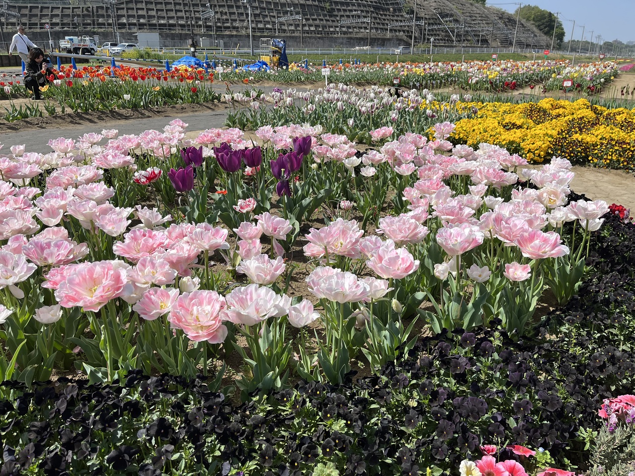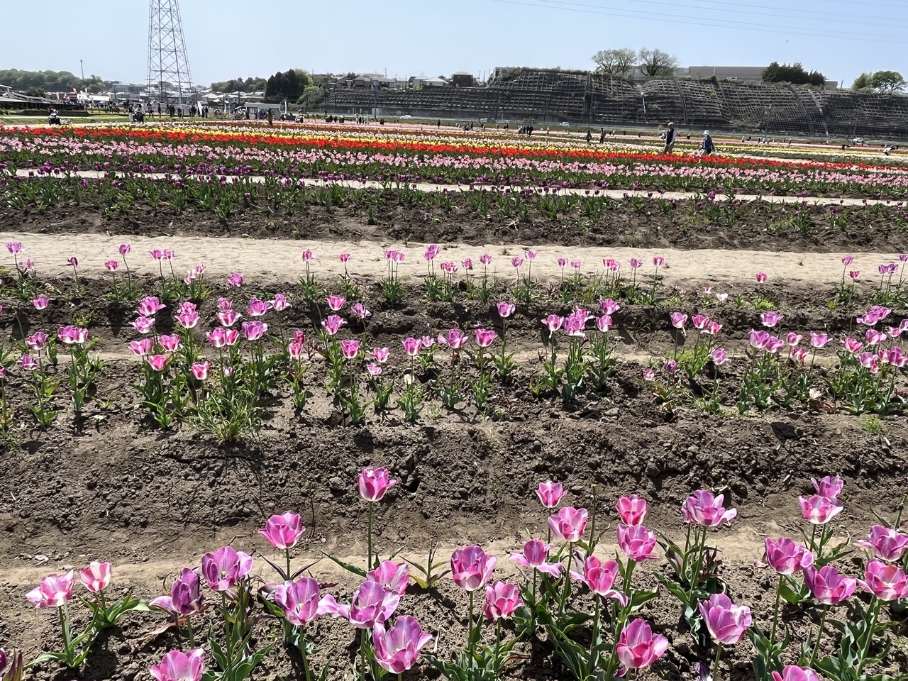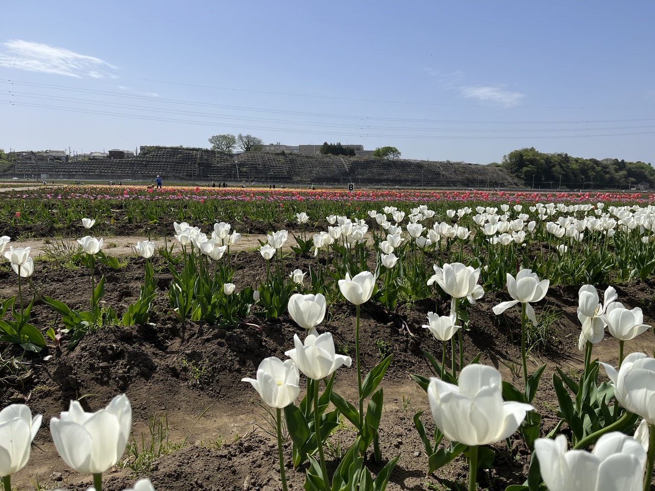 今回はチューリップフェスタに行きましたが、夏のひまわりは7月8日から7月23日、秋のコスモスは10月7日から10月22日の予定のようです。チューリップフェスタの時期には、フードトラックなども出ていました。チューリップの季節の土日はすぐ側にある印旛沼の観光遊覧船も出ているようです。印旛沼の水辺沿いがサイクリングロードになっていてもっと早い季節には桜もあります。レンタサイクルもあるのでサイクリングもいいかもしれません。チューリップの季節にはチューリップ畑の外側にレンゲもいっぱい咲いて綺麗でした。