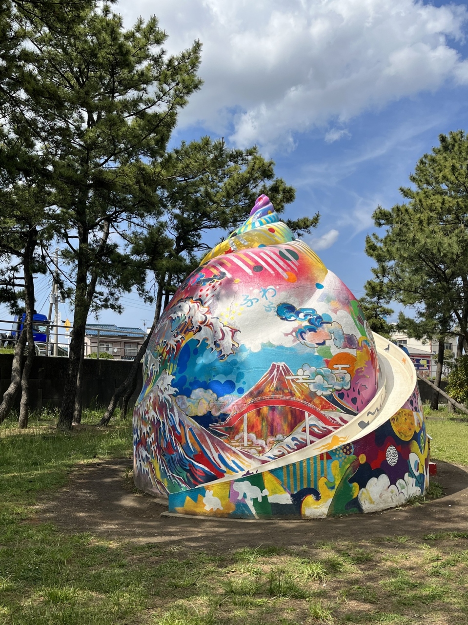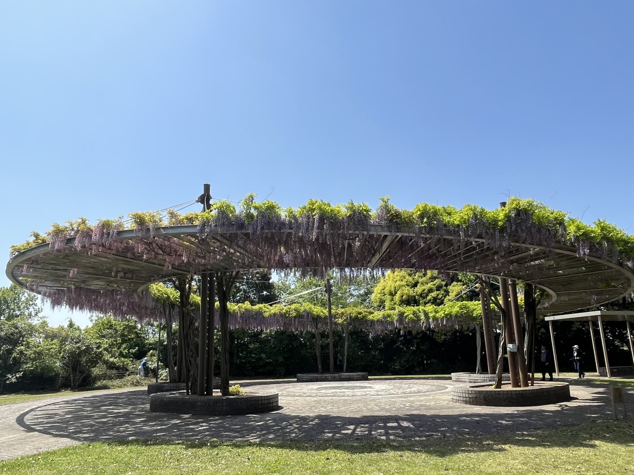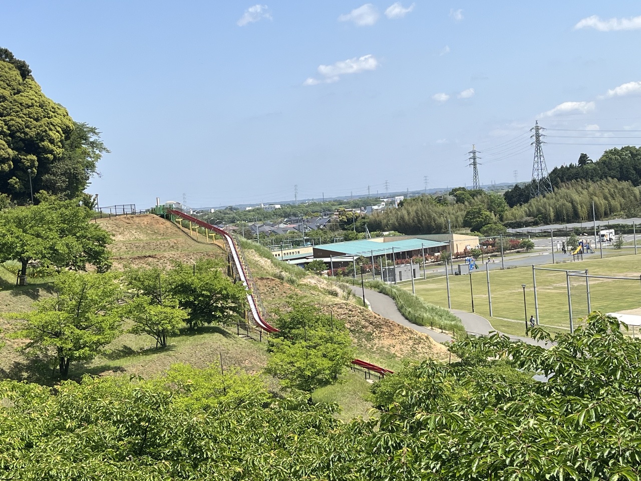 印西市役所のある木下駅から1キロぐらいかと思います。かつて印旛高校のあった跡地にできた公園で貝の化石の貝層があります。子供が遊べる公園ゾーンには53メートルのとっても長いローラ滑り台があり子供には楽しい場所だと思います。今の季節は円型の藤棚がありこの季節は近くの方がひっきりなしに藤を見に来ていました。小学校近くの場所からはからは利根川も見えました。駐車場は3ヶ所程ありました