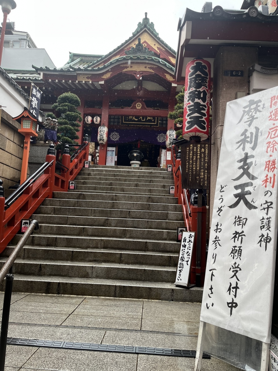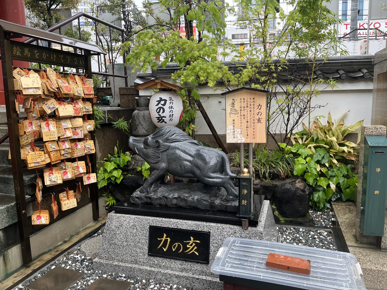 何度かアメ横には行っているのに気づきませんでした。今回は雨が降っていたので御徒町から降り一本脇の道に入ると立派なお寺が階段を登った所にありました。400の歴史のあるお寺だそうで、摩利支天のお使いの猪が祀られていました。中に入ると自分の身体の悪い所を擦る菩薩像がありました。今度からはアメ横に行ったらまたお参りしようと思います。