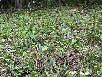 カタクリ群生地が近くにあるというので行ってみたのですが、3月の末、4月に入ってからと行きましたが3月は早かった様で、4月は斜面の上にはある程度咲いていましたが、斜面には終わりかけたものもあるのに本当にポツポツでした。元々小さくて可愛いお花なので立派なカメラで望遠で撮ればいいのかも知れません。他のすみれや水仙の方が目立ったくらいでした。場所も分かりづらかったです。