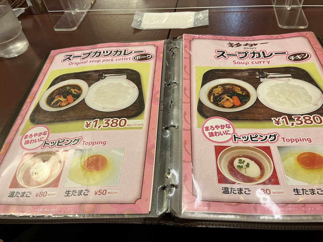 家族はそれぞれチキンスープカレーとスープカツカレーを注文しましたが、スープカレーはもう一軒のスープカレー屋さんには全く敵わない気がしました。- 旅行時期
