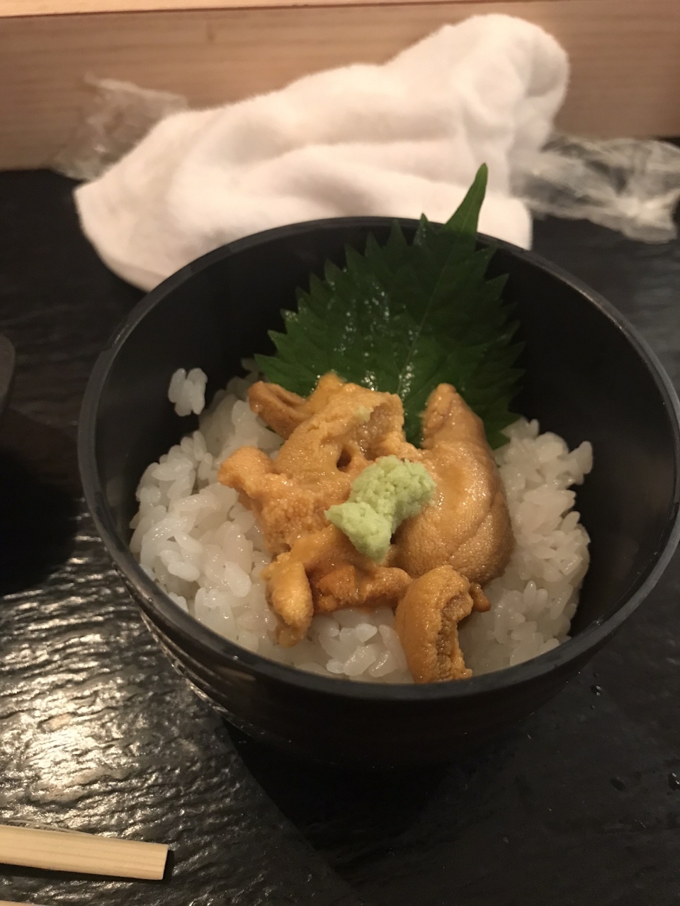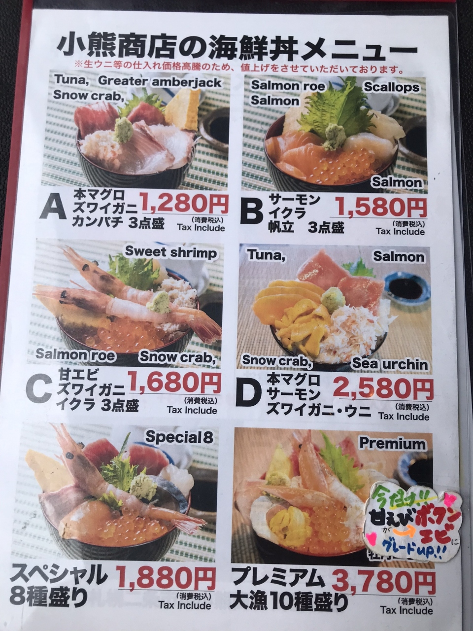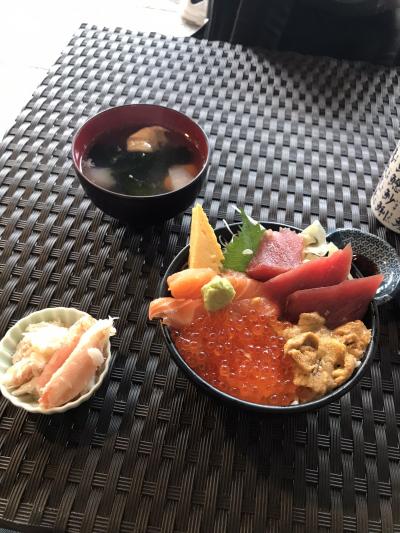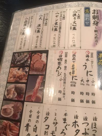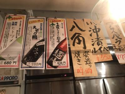 生きイカをウリにしている居酒屋さんで泊まったホテルから近かったので行ってみました。函館から直送されているらしい生きイカがある事を確認して入店して、その他にホッキガイ、蟹味噌、ホッケなどの酒のツマミを頼み、最後にちょっとだけ雲丹丼で締めました。生きイカのゲソは天ぷらにしていただきそちらかも美味しくいただきました。北海道の味覚ぽい物は大体ある居酒屋さんでした。