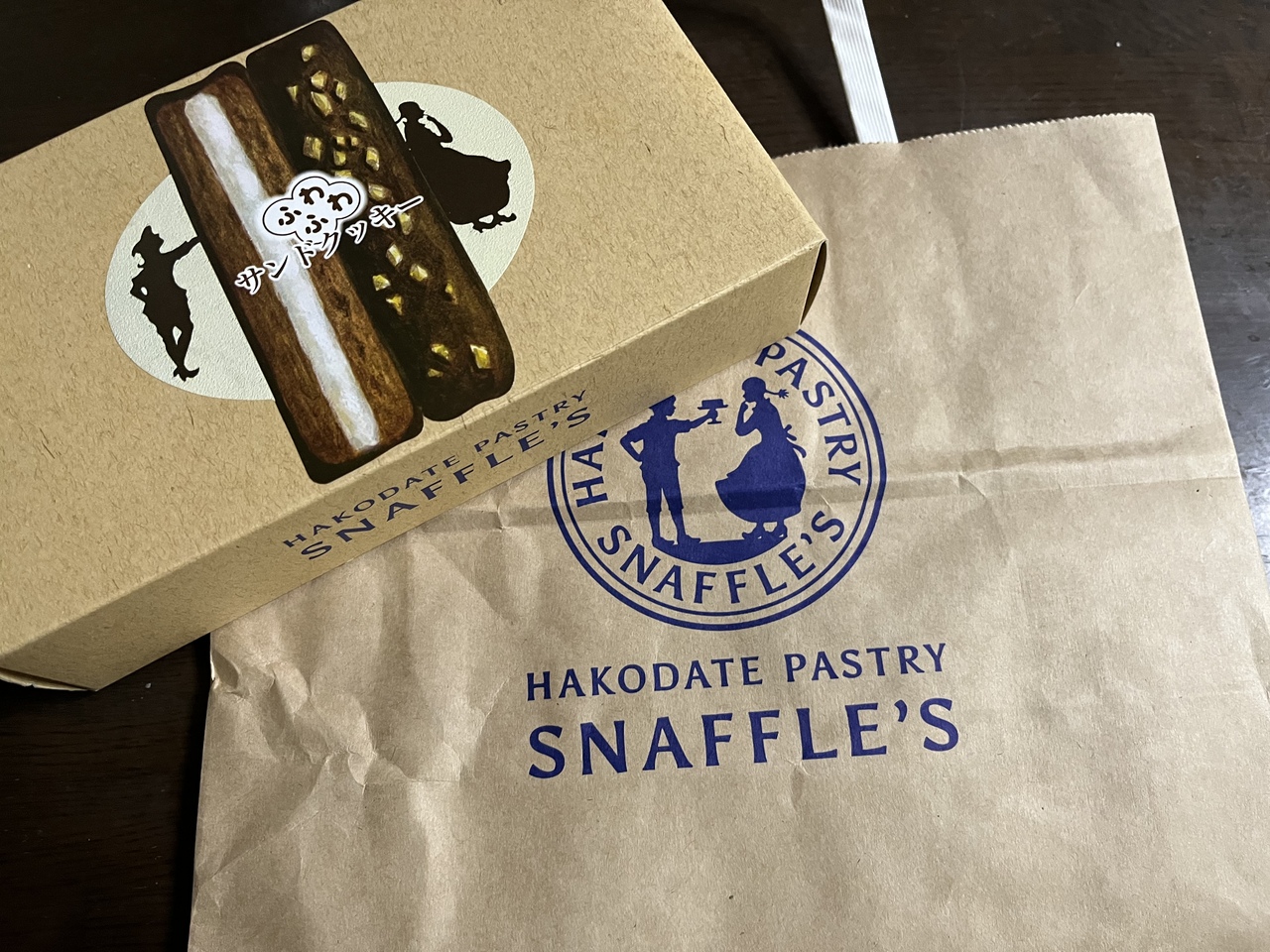 スナッフルスさんといえば函館に本店があるお店でチーズオムレットが有名なお店ですが、千歳空港でしか買えないのふわふわサンドクッキーを今回は購入してみました。チョコの中にマシュマロやクッキーなどが入ったお菓子ですが、意外とそんなに甘くはないです。チーズオムレットは1週間ぐらいの日持ちで、サンドクッキーは1月ぐらいあります。