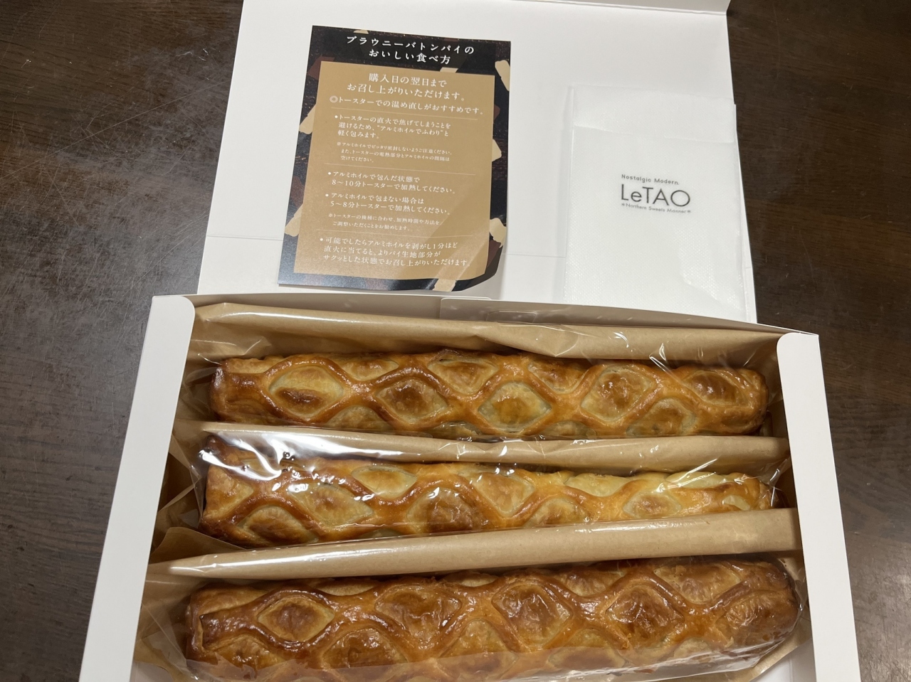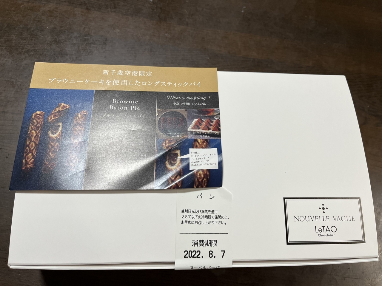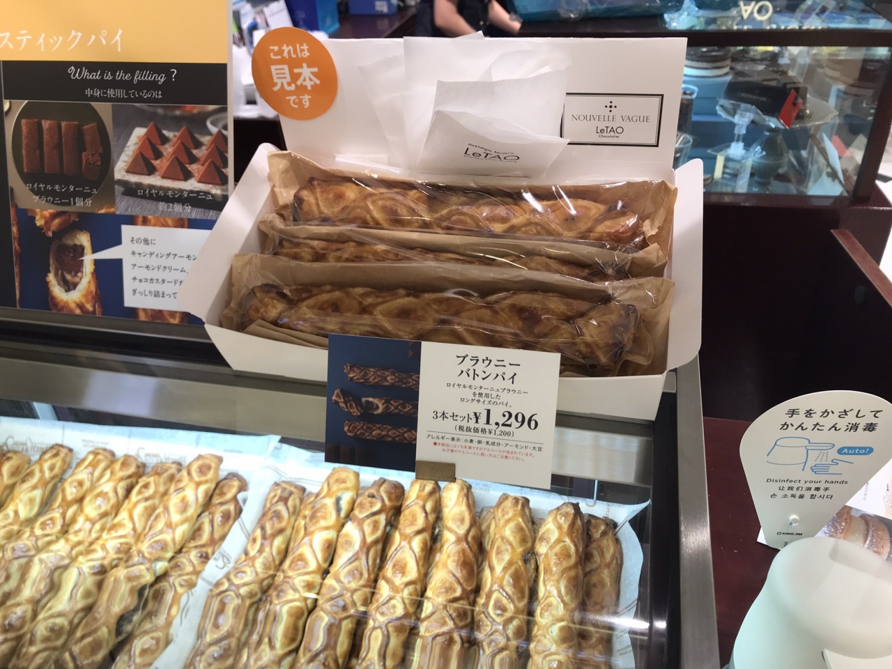 ルタオさんは北海道銘菓として有名になっていますが、ヌーベルバーグ・ルタオ・ショコラティエさんは小樽と千歳にしかないようで、そのなかでもブラウニーバトンパイは千歳空港限定商品です。焼き上がり時間が決まっているので、他のお店をみて時間を合わせてて行ってみました。中のブラウニーはルタオナンバー1のダージリンの香りのロイヤルモンターニュを使用したブラウニーを23センチのパイに入れて焼いた物(432円)ですが、個人的には好みではなかったのでリピはないです。
