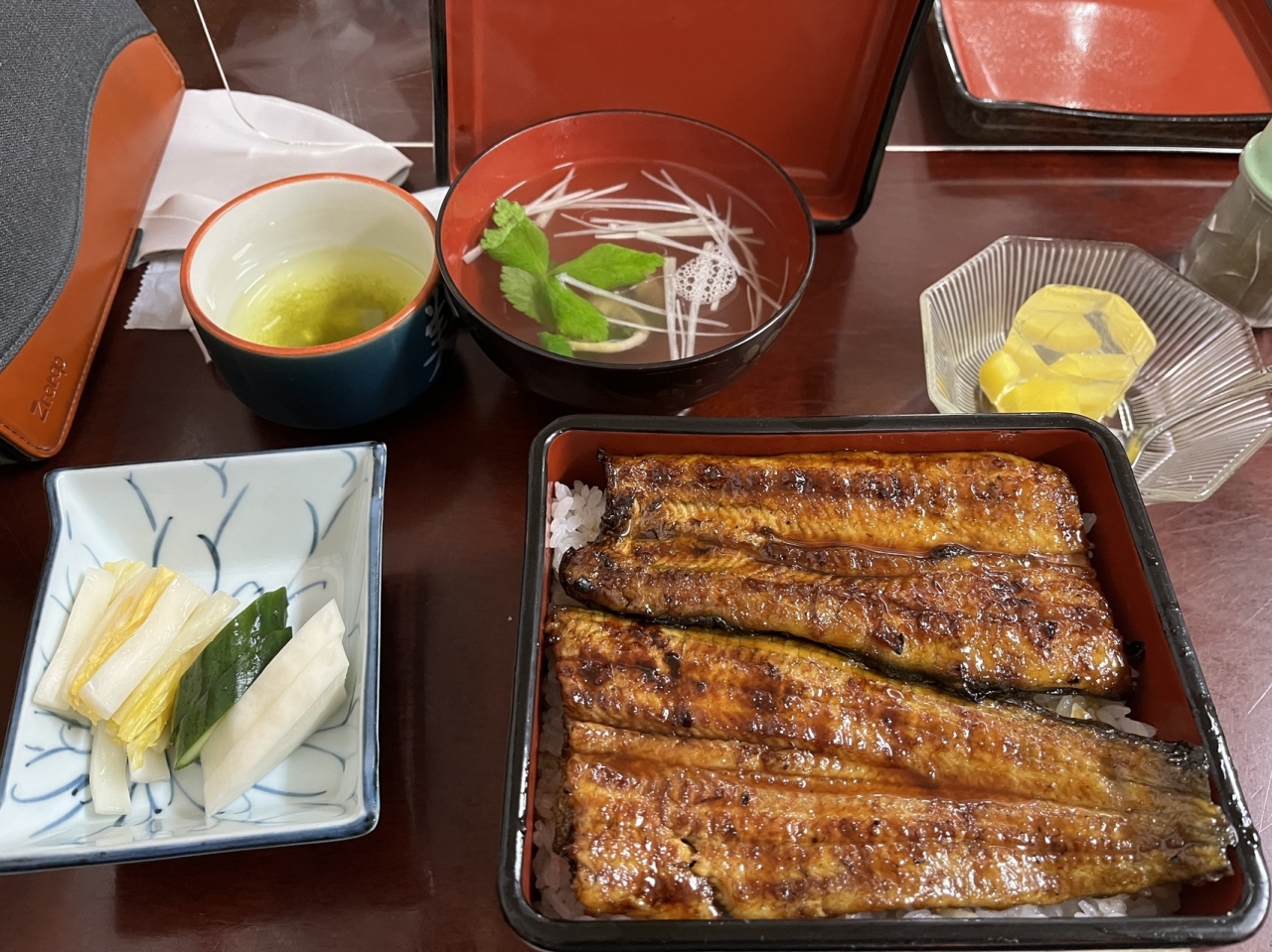 暖簾には鰻の天ぷら、蕎麦、蒲焼など書いてありますが、私達は蒲焼を頼みました。鰻のメニューが梅が一番高く松が一番やすくなっているので気をつけてください。鰻は蒸さないタイプの関西風らしくしっとり系よりはかりかり系です。昼時だったのでお蕎麦など鰻以外を食べられている方もいて、おいしい鰻を出す昔風の食堂という感じのお店でした。