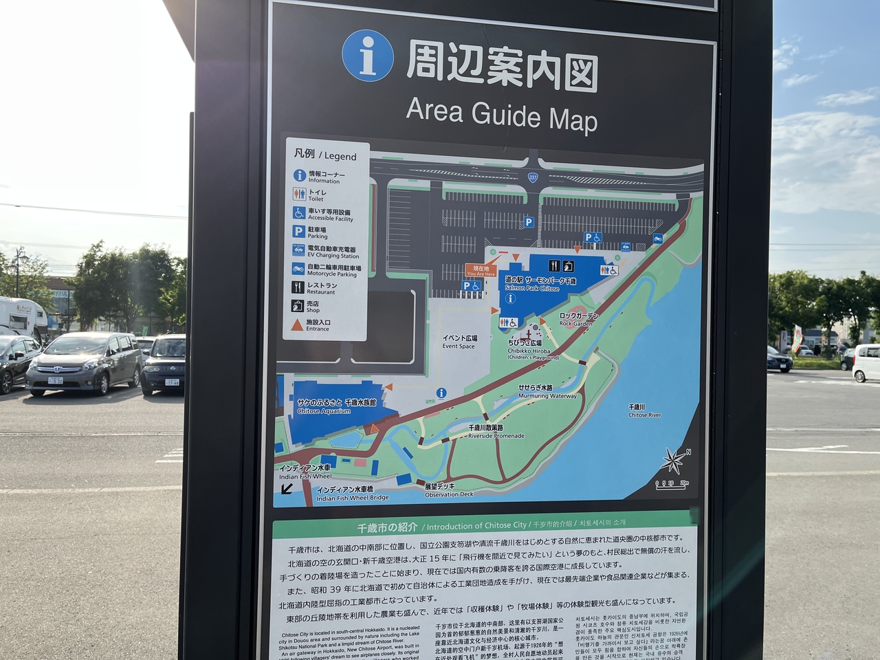 トイレの綺麗な道の駅北海道でナンバー1に選ばれただけあって、とても明るくて綺麗な道の駅でした。サーモンパークは道の駅の中にはサーモンはいませんでしたが、同じ敷地には水族館があり秋にはサーモンが溯上も見れるようです。道の駅にはフードコートがあり食事できる所もあり、農産物直売所、お土産売り場、コンビニもあります。裏には子供の遊び場もあり道の駅としては、割といいと思うのですが、空港に早くついても千歳空港があまりにも魅力的すぎて早く空港に行きたくなるのでちょっと損しているかも。夕方だったので農産物が、少し少なめだったのが残念でした。