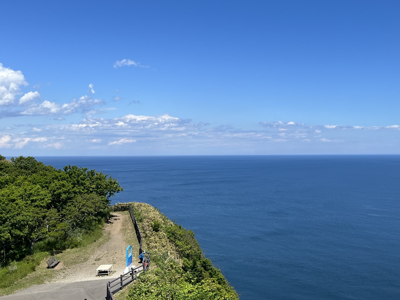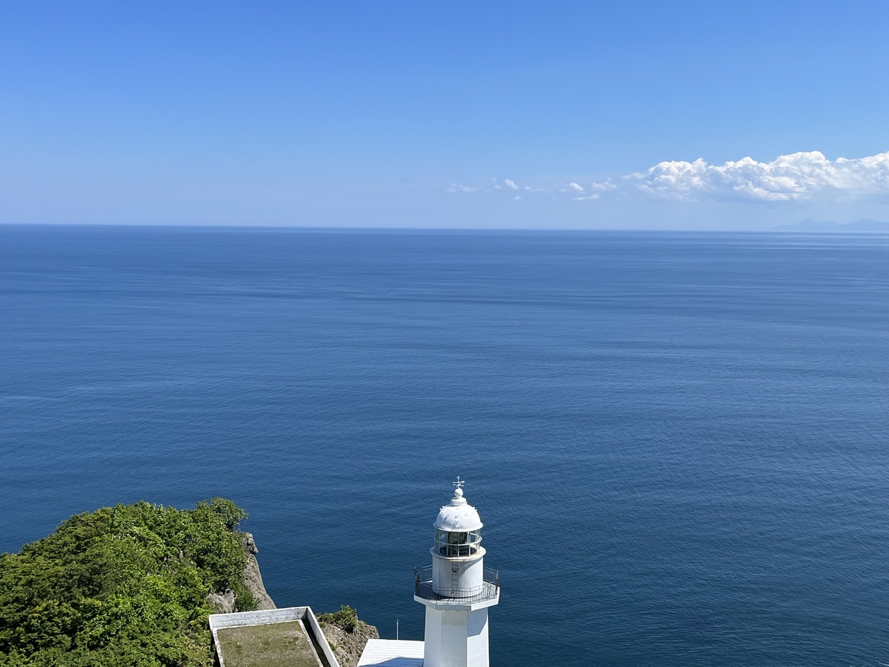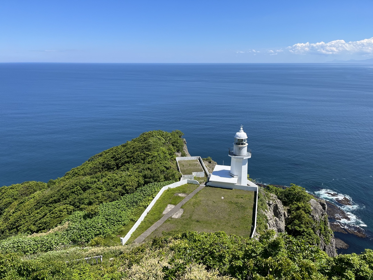 登別温泉に泊まる前に支笏湖や洞爺湖も大昔ですが行ったことがあったので、他の観光地をみていたところ北海道青の絶景の地球岬というものがあり北海道の絶景ナンバー1にも昭和の最後の頃ですが北海道の絶景にえ選ばれたていると知り、天気も良かったので行ってみました。口コミどおり、白い灯台があり天気が良かったので本当に海が青く綺麗で外国の景色のように綺麗でした。駐車場にはそれなりに車も停まっていて室蘭で一番の絶景の観光地です。夏には運が良ければイルカやクジラを見る事ができるかもしれないみたいです。