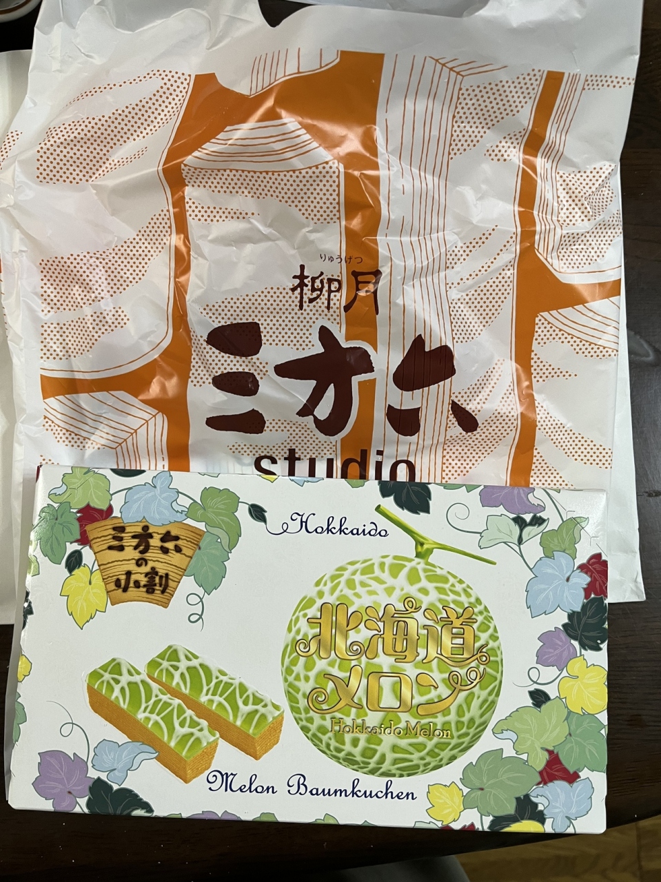 柳月さんというとまず三方六、次にあんバターサンドというイメージですが、個人的には三方六の小割りが大好きです。新千歳空港空港は魅力的なスイーツが多すぎていくらお金と胃袋があっても足りないので、三方六さんでは季節限定のメロン味の三方六の小割を購入しました。季節によって苺味などの味があったり、空港限定の飛行機の包装の小割などありバームクーヘンなので日持ちは3週間程度あるのでお土産にいいと思います。