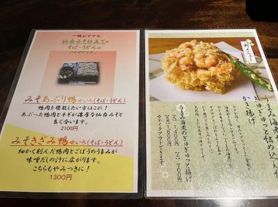 ゴールデンウイーク中は、遠くで混む所でなく近場探索でした。守谷の手打ち蕎麦と鴨料理のお店なので鴨せいろは外せないと思い他の蕎麦屋さんではあまりないみそあぶり鴨せいろ(2,100円)を頼みました。蕎麦ももちろん美味しくて、鴨は流石に鴨料理を名乗るだけあり美味しかったのですが、つけ汁の味が結構濃いめで途中から蕎麦湯で少し割るとちょうどいい感じでした。せいろの他に頼んだ旨味海老のかき揚げは海老もぷりぷりでかき揚げはサクサクで美味しかったです。守谷には蕎麦の美味しいお店は幾つかあり迷ってしまいますが鴨汁などを食べたい時はおすすめです。
